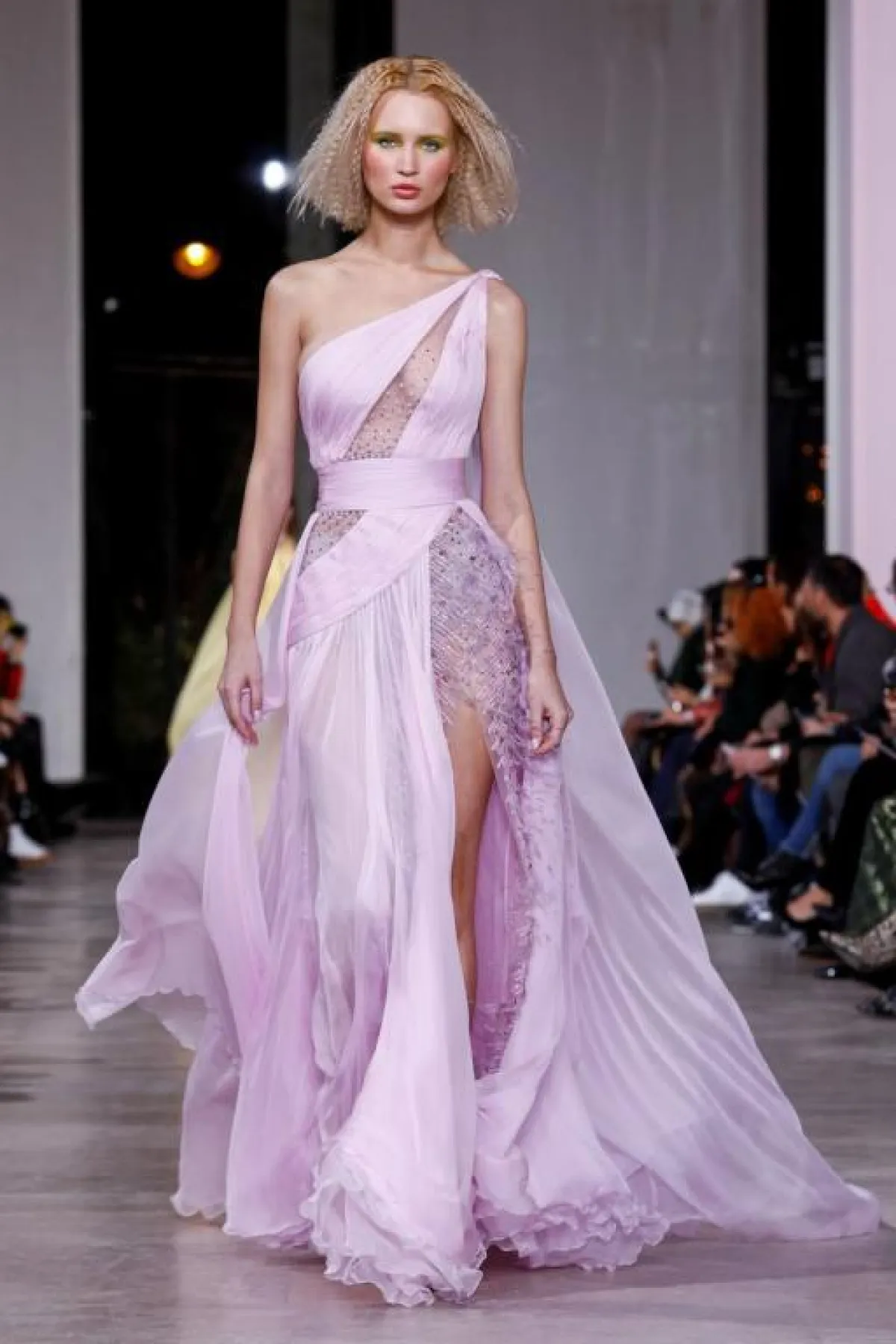 قدم المصمم جورج حبيقة فساتين عديدة بألوان الباستيل.
