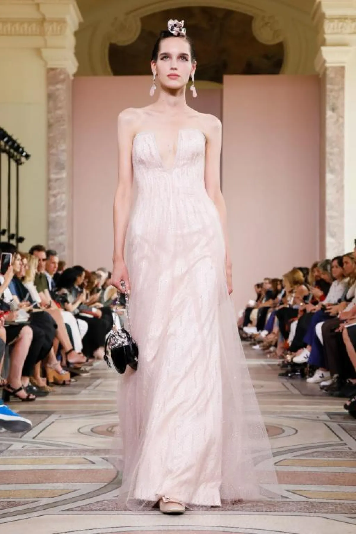 كذلك قدمت الماركة فستان باللون الوردي مع طبقة من التول.