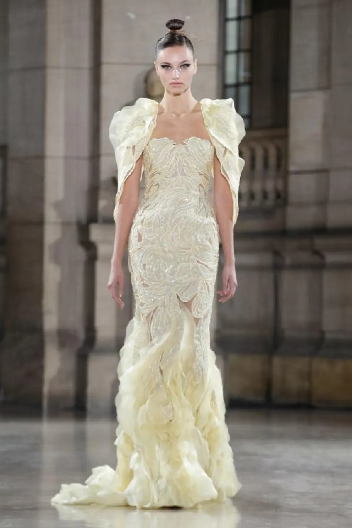 وظهرت الورود البارزة على بعض التصاميم لإطلالة نابضة بالحيوية.
