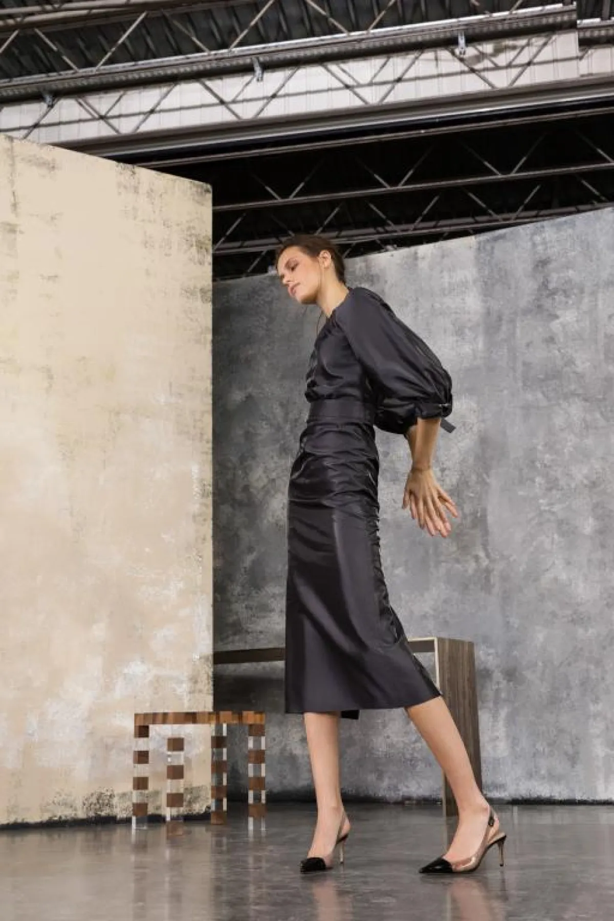 وقد تنوعت هذه الفساتين بين التصميمات الميدي التي وصل طولها أسفل حد الركبة، والتصميمات الماكسي الأكثر رسمية، وشاهدنا الموديلات التي تليق بالمناسبات اليومية والعمل، والمناسبات والزيارات الرسمية والسهرات أيضًا.