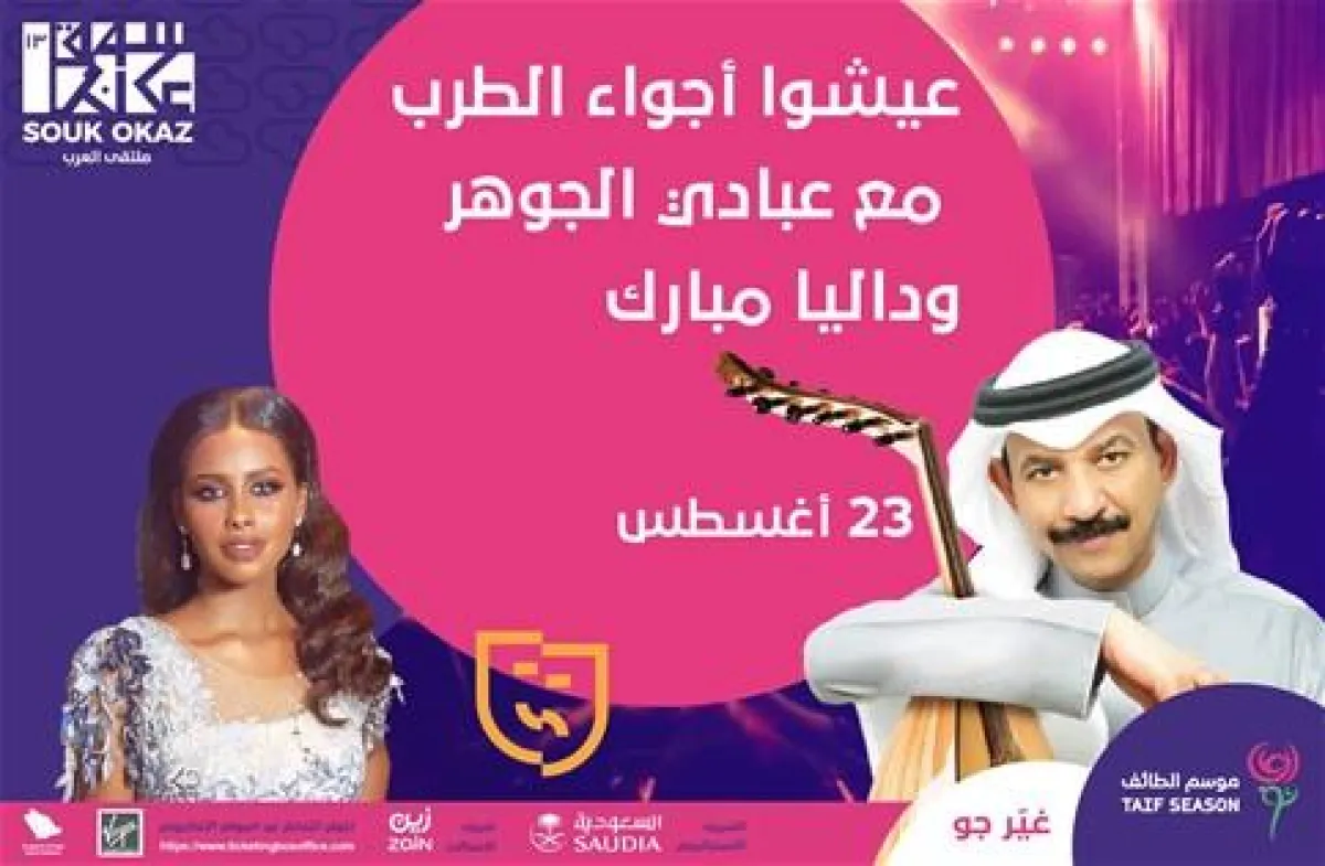 ضمن فعاليات موسم الطائف الغنائية أحيت الفنانة  داليا مبارك والفنان عبادي الجوهر حفل غنائي،  وذلك في مسرح عكاظ بالطائف مساء 23 أغسطس 2019 برعاية الهيئة العامة للترفيه ومواسم السعودية والهيئة العامة للثقافة.