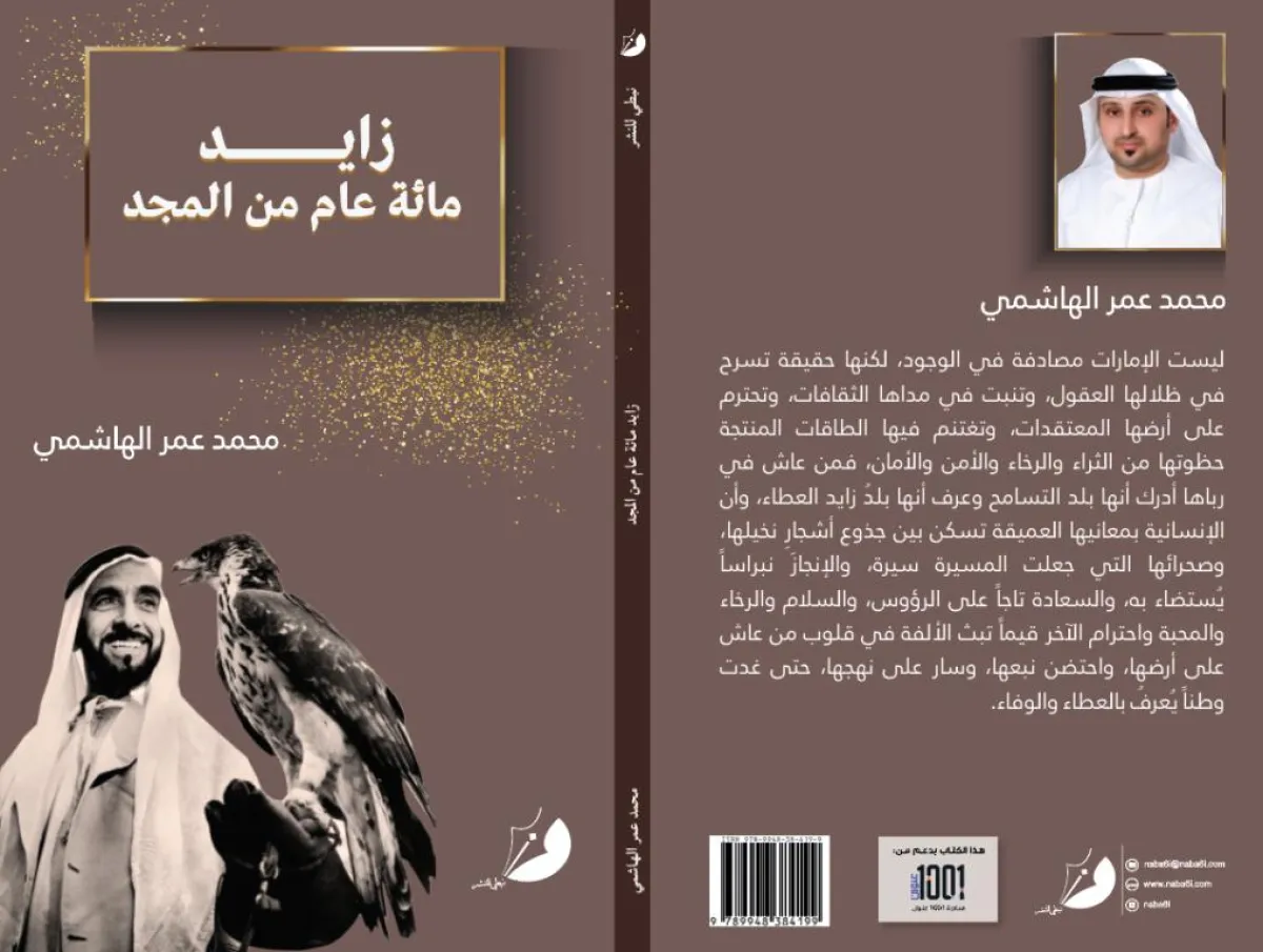 في كتاب "زايد مئة عام من المجد" يجمع الكاتب الإماراتي محمد عمر الهاشمي، باقة مختارة من المقالات التي تتغنى بحب الوطن من زوايا متعددة وقلب واحد لتبقى بمثابة الرسالة المشرقة التي تعبر عن صورة الوطن للأجيال القادمة.