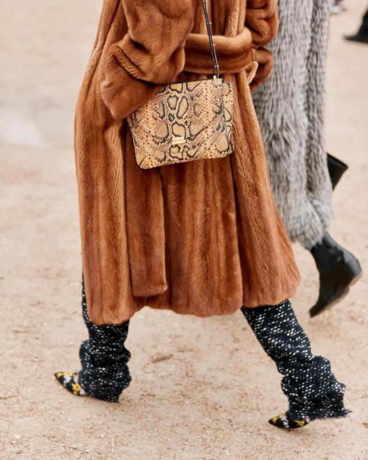 من الفساتين إلى الأحذية والحقائب، تعد طبعة جلد الثعبان واحدة من أكبر اتجاهات الخريف. يضيف الملمس الفاخر لمسة أنيقة إلى أبسط الأزياء مثل الجينز والكنزات الصوف. ارتديها على شكل حقيبة كروس بودي، أو حقيبة دلو، أو حقيبة حزام؛ لإطلالة عصرية.