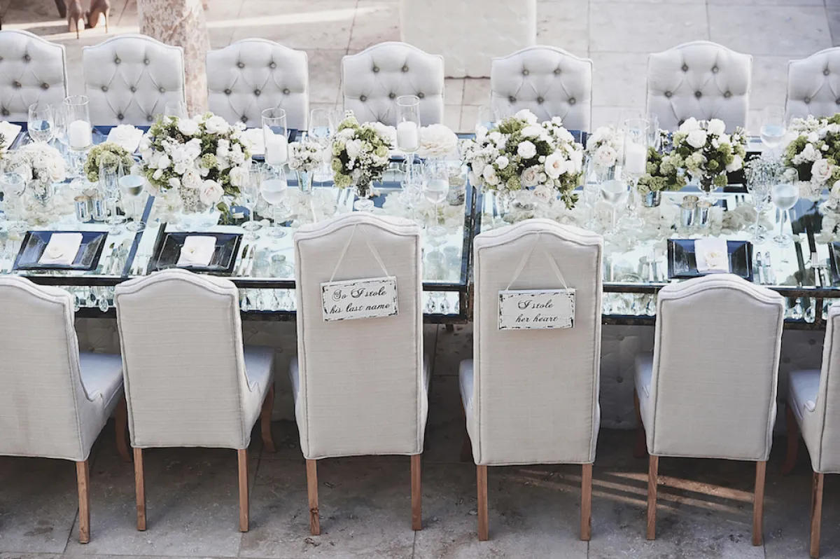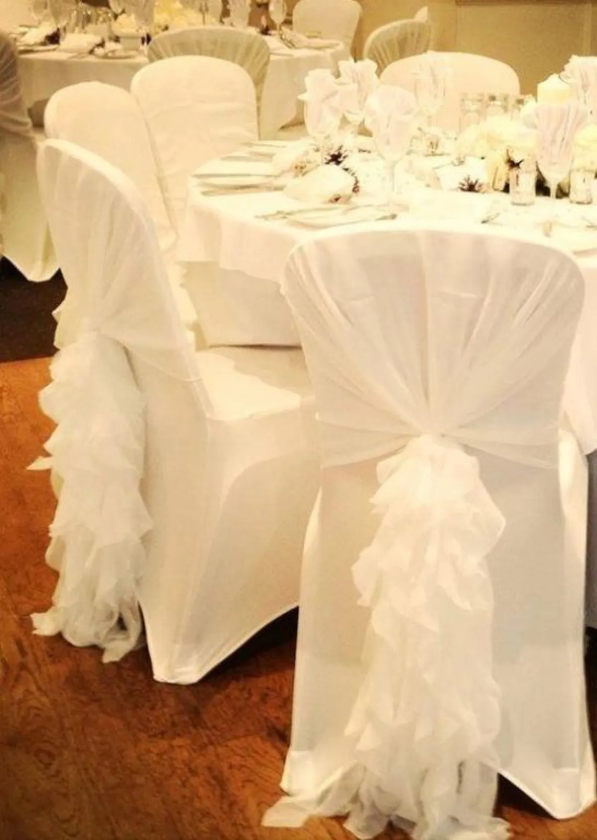 إذا كان حفلكِ فخمًا وأسطوريًّا، وبه الكثير من التفاصيل من ألوان الورود والشموع، والسقف، فأفضل خيار في هذه الحالة لكِ ستكون الكراسي البيضاء، اختاريها بتصميمات كلاسيكية كالكراسي المبطّنة بقماش ناعم كالفيلفت، أو أقمشة الستائر السميكة اللامعة التي تشبه الجاكار.