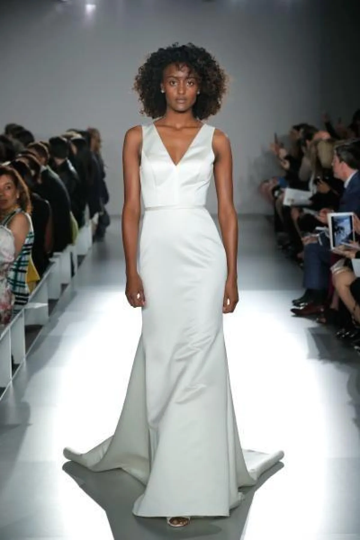 قدمت بعض الماركات فساتين زفاف كلاسيكية بقصّات عمودية ناعمة، مثل فستان زفاف تاداشي شوجي Tadashi Shoji وسافانا ميلر Savannah Miller.