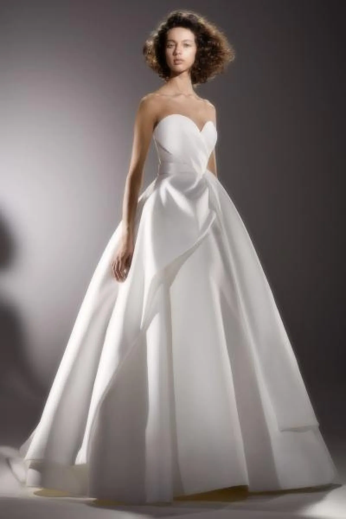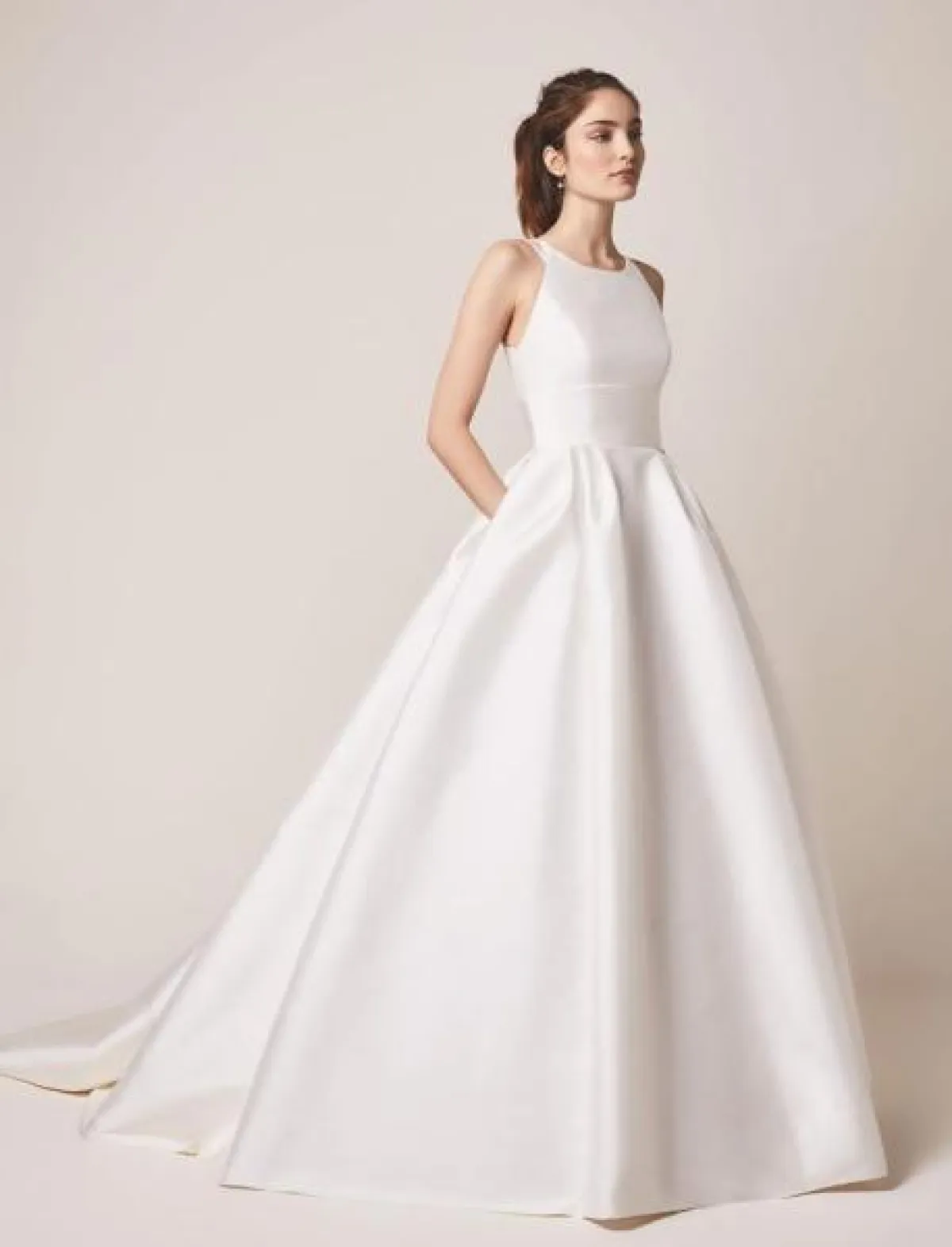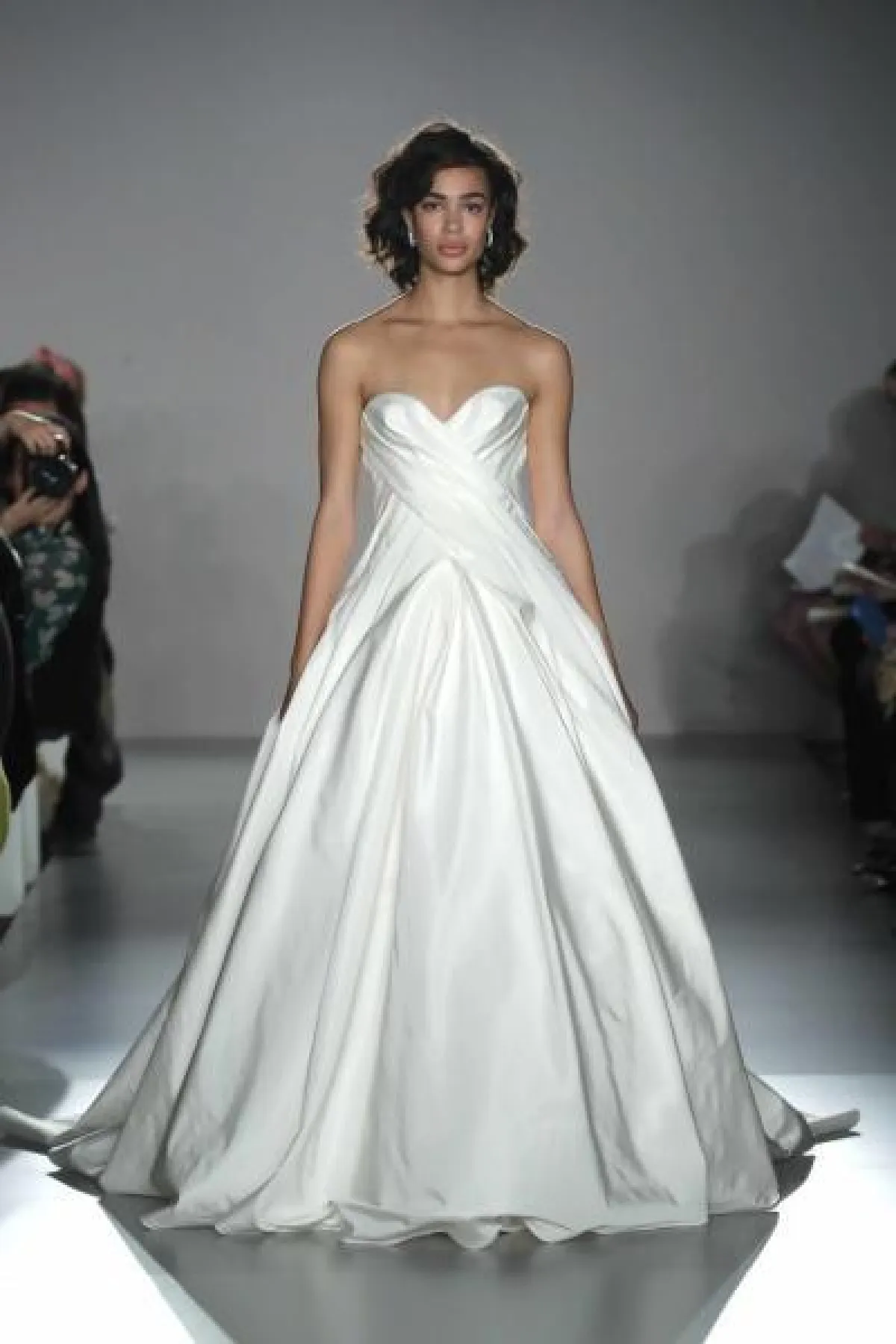 كذلك قدمت ماركة جاستن ألكسندر Justin Alexander فستان زفاف كلاسيكي منفوش بقبّة مستقيمة.