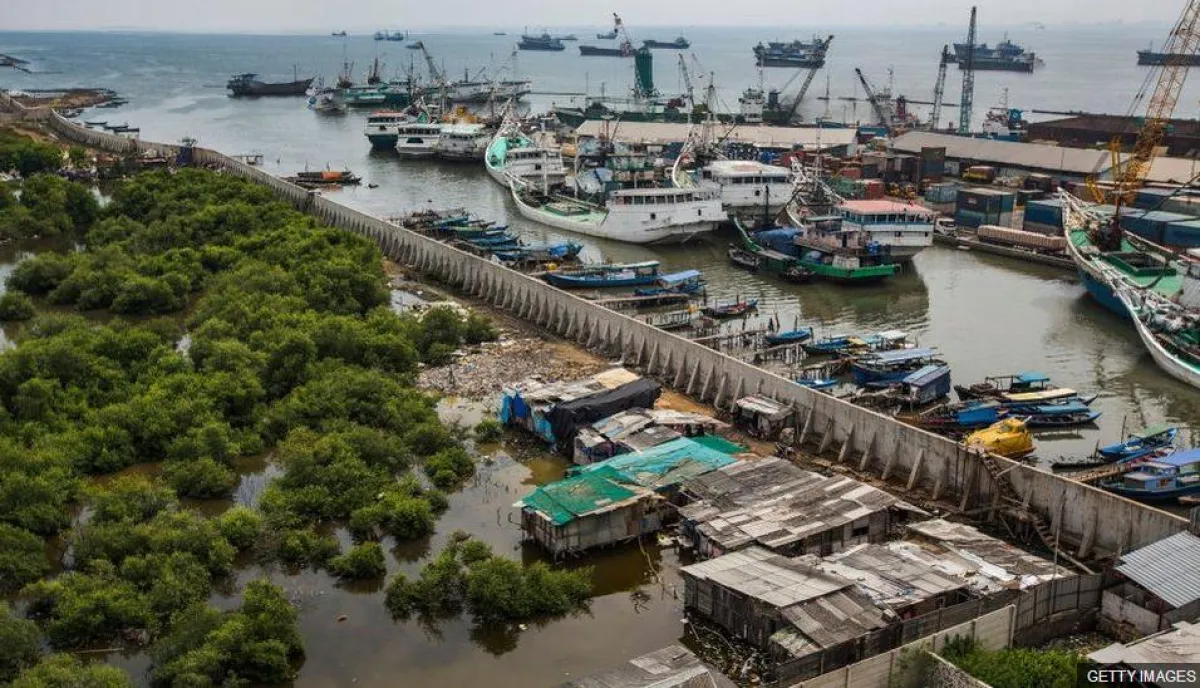 تفيد دراسات بأن منسوب جاكرتا، التي يقطنها أكثر من 10 ملايين شخص، ينخفض بوتيرة هي الأسرع على مستوى العالم؛ إذ أصبح نحو 40% من جاكرتا، الآن دون مستوى سطح البحر.
