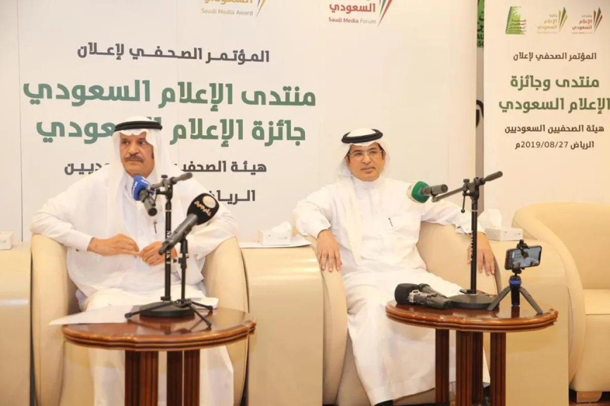 عقدت هيئة الصحفايين السعوديين، ظهر اليوم الثلاثاء، مؤتمراً صحفياً لإعلان تفاصيل منتدى الإعلام السعودي، وجائزة الإعلام السعودي في نسختهما الأولى، في مقر الهيئة بالرياض، بحضور كلٍّ من خالد المالك، رئيس مجلس إدارة هيئة الصحافيين، ومحمد فهد الحارثي، عضو مجلس إدارة هيئة الصحافيين السعوديين رئيس منتدى وجائزة الإعلام السعودي.