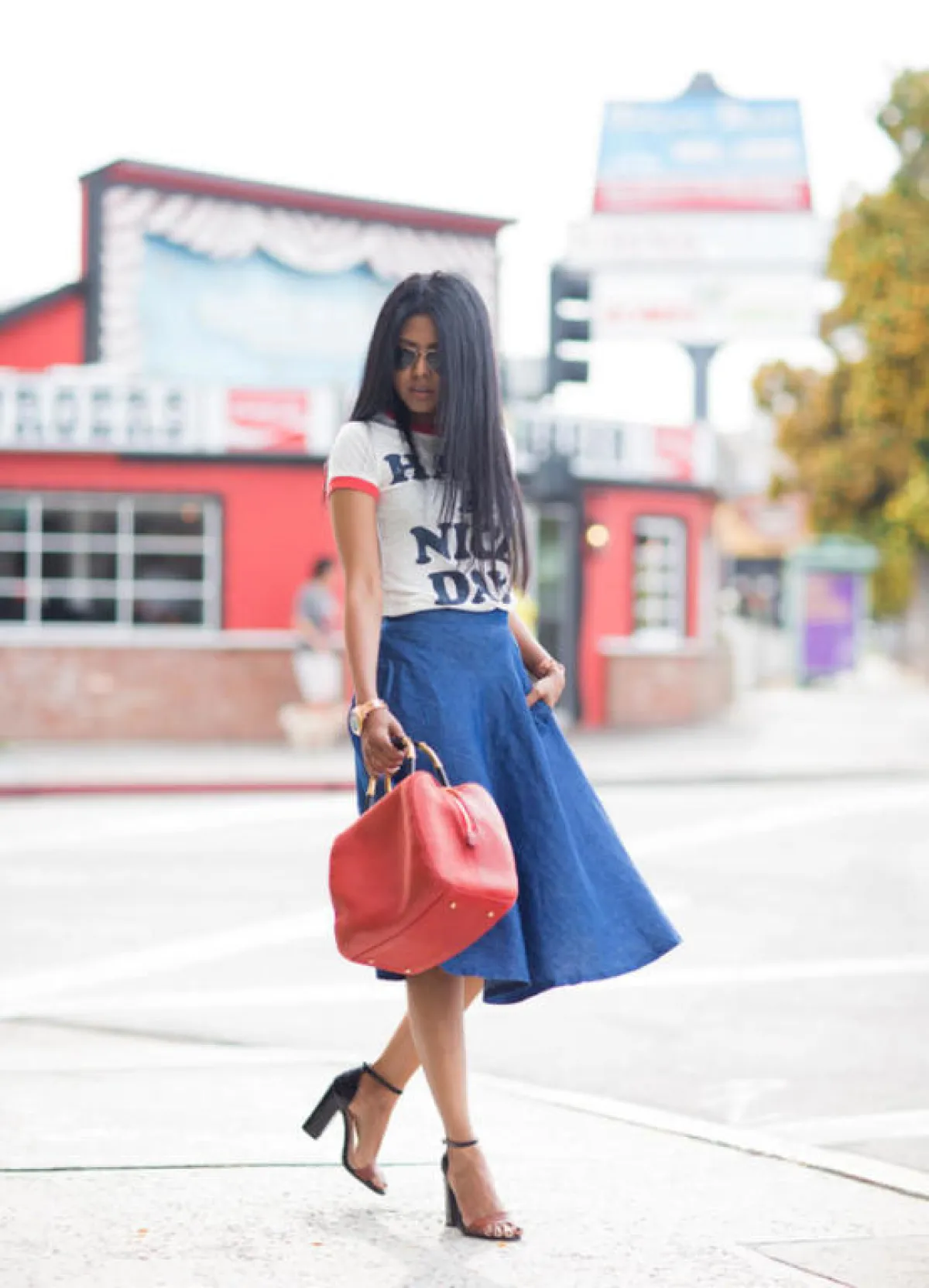 من المهم جدًّا معرفة كيف ترتدين التنورة الميدي عندما يكون الطقس متقلّبًا، لذلك يجب عليكِ أن تحرصي على اختيار تنورة بطبعة جريئة كطبعة الحيوانات على سبيل المثال، أو إن كنتِ لا تحبين الطبعات، يمكنكِ اختيار التنورة بدرجات الألوان الداكنة للحصول على المظهر المميز، واستبدال الصنادل الصيفية بزوج من الأحذية الرياضية أو البوت العالي.