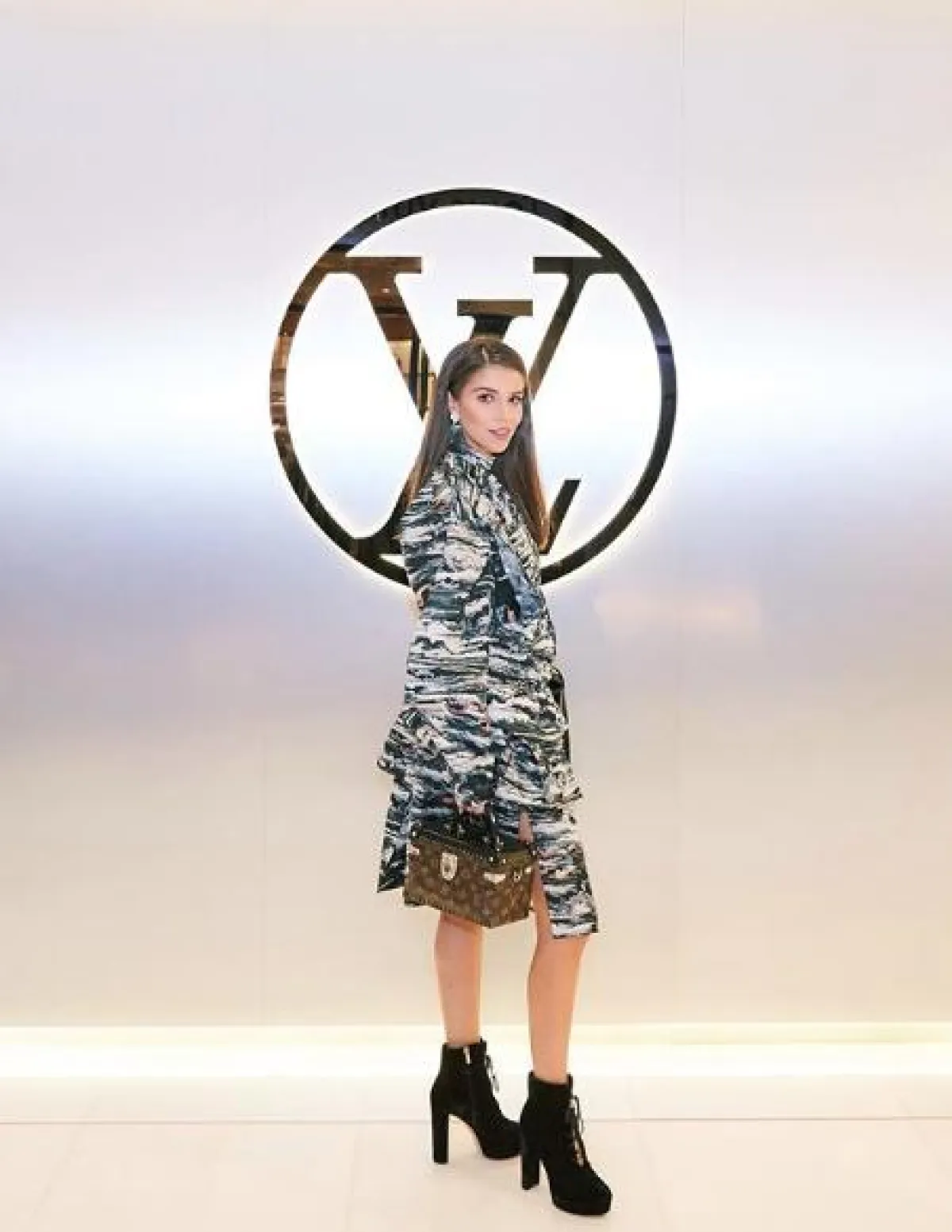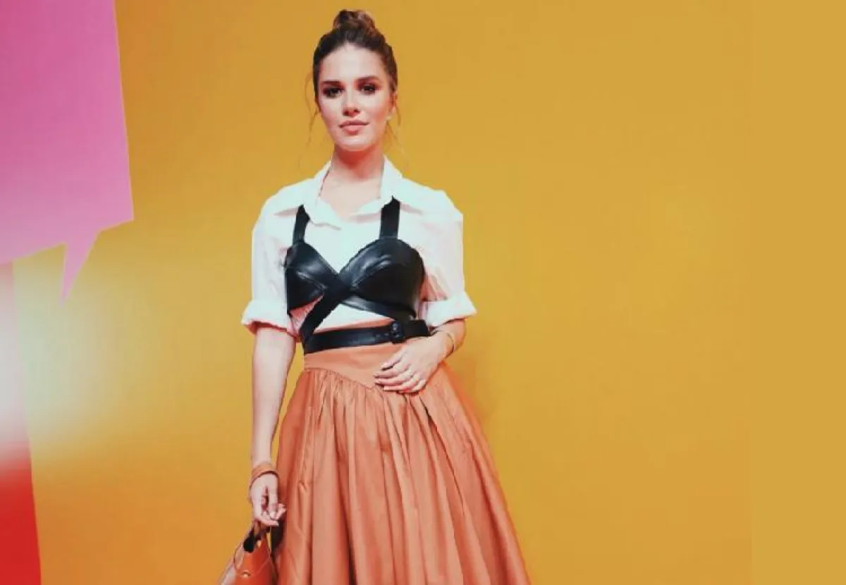 تنسيق خريفي آخر مميز اعتمدته لارا اسكندر، جمعت فيه بين الأسلوب العصري والأسلوب الأنثوي الأنيق، حيث نسقت لوك مميزًا من “آلايا” Alia اختارت فيه تنورة ميدي كلوش باللون البيج مع قميص كلاسيكي باللون الأبيض، ومن فوقه كورسيه من الجلد الأسود وأكملت اللوك بصندل بكعب عالٍ وشنطة يد باللون البني.
