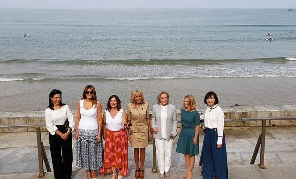 وظهرت الزوجتان في الصور وهنّ تتبادلان القبل بودّ شديد، قبل البدء في المشي على شاطئ “كوت دي باسك” في بياريتز، في اليوم الأخير من قمة مجموعة السبع.