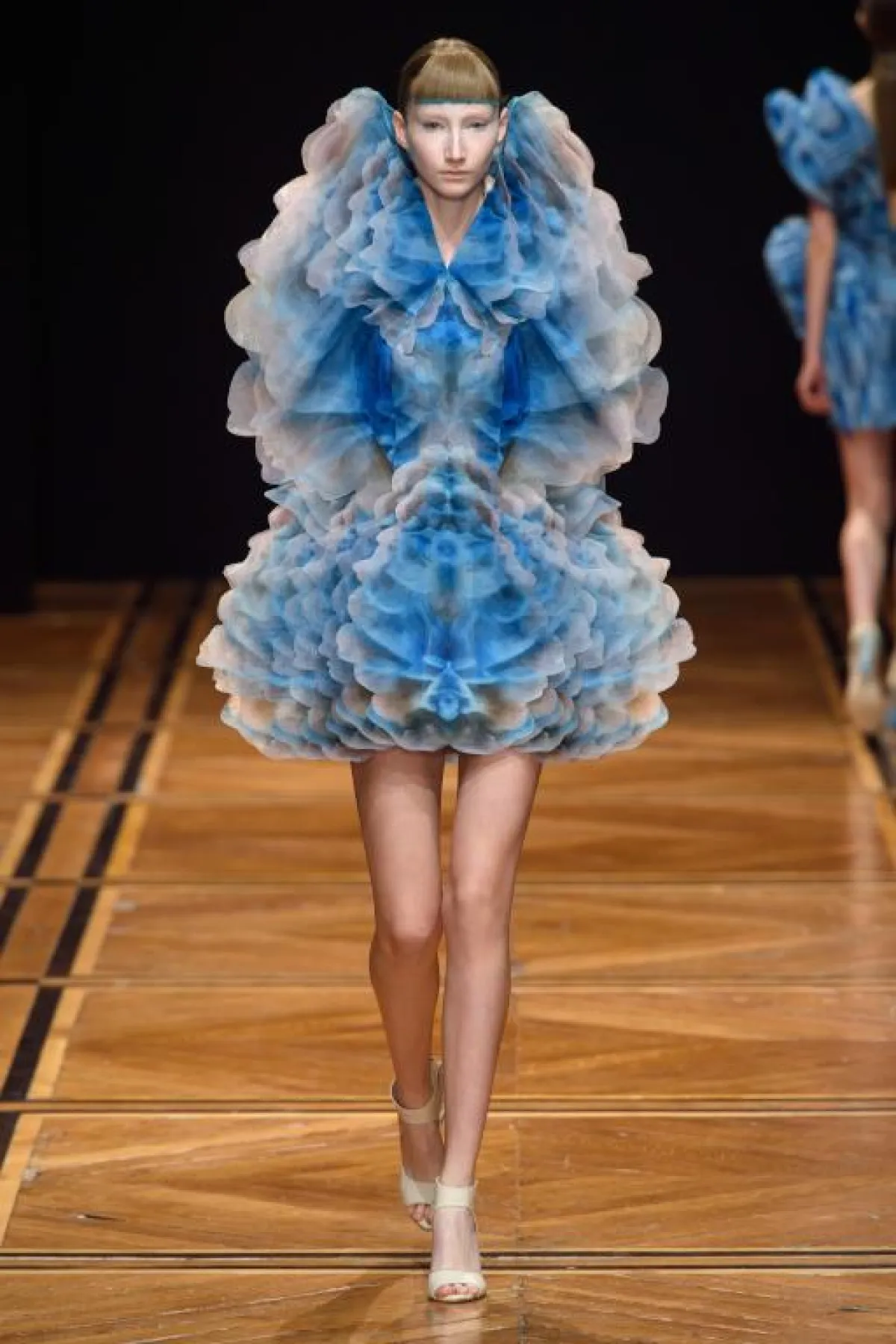أما إذا كنتِ تتمتعين بشخصية جنونية وجريئة، فلِمَ لا تفكرين بهذا التصميم من Iris van Herpen، المُصمم بالكامل من الكشكش، لاطلالة خاطفة لكل الحضور.
