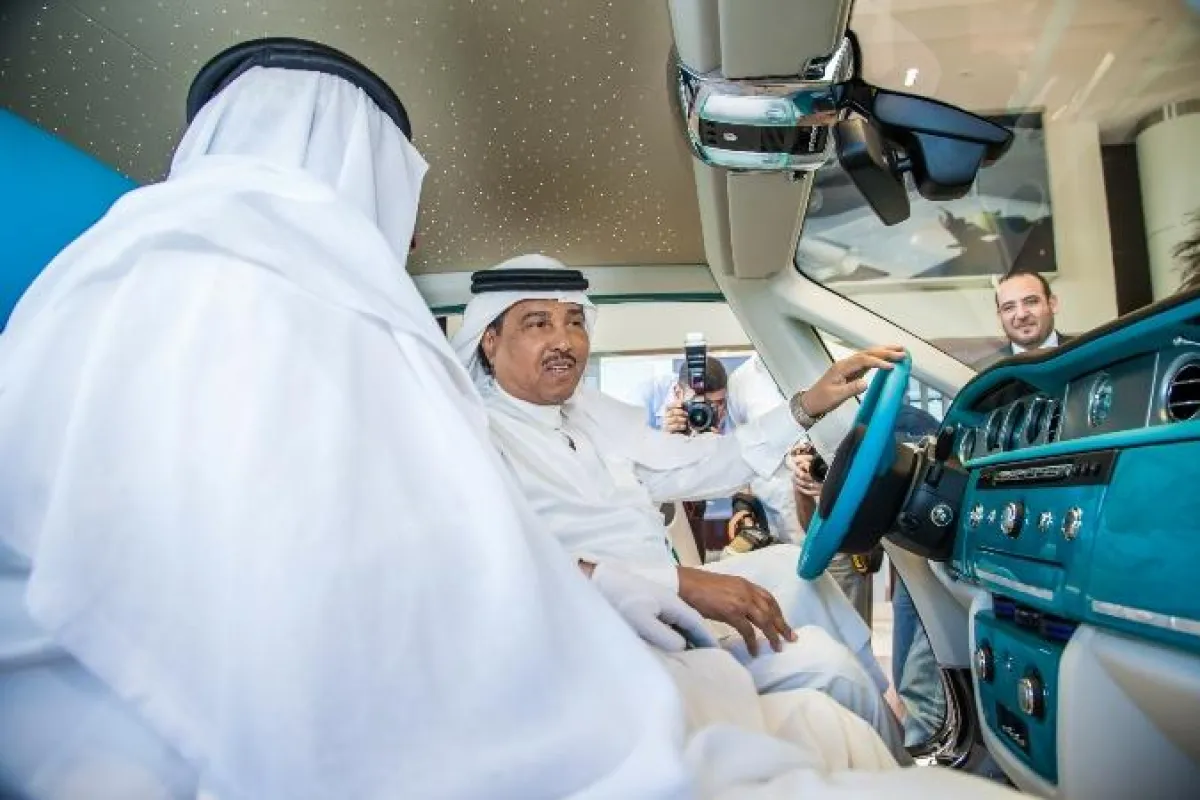وقد أصرّ فنان العرب على زيارة صالة العرض المعروفة حول العالم، والواقعة في منطقة "أم النار"، من أجل سماع المزيد عن برنامج التصميم حسب الطلب، والذي أنتج سيّارات رولز ـ رويس فريدة من نوعها، مثل: فرناس، وأندلوسيا، وريان، وكلها من ابتكار وتصميم كاظم الحلي، مدير علامة رولز ـ رويس في أبوظبي موتورز.