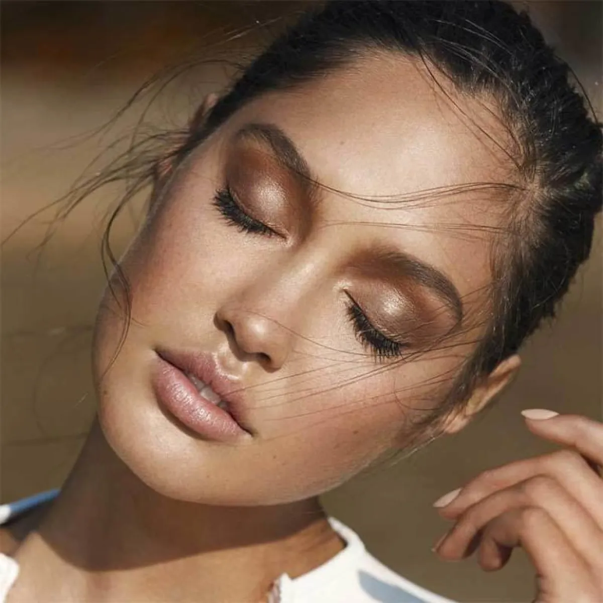 أما إذا كنت من صاحبات البشرة السمراء، فاحرصي على تطبيق كريم أساس بلون قمحي مائل الى الذهبي، على أن يكون بلون قريب من لون بشرتك، ليمنح بشرتك السمراء بريقاً خاصاً. من ثم، طبقي البرونزر بلون غير داكن يميل الى اللون الذهبي، فهو يعمل على إبراز ملامح وجهك بطريقة جذابة جداً وطبيعية. وعند الانتقال الى مكياج العيون، احرصي على اعتماد ظلال العيون بالألوان الترابية والبرونزية بتدرجات فاتحة إلى متوسطة كي تبرزي لون عينيك، واحرصي على مزجها بطريقة متقنة من دون أي شوائب. أما لمكياج الشفاه، فاستخدمي أحمر الشفاه بألوان النيود المتوسطة أو الفاتحة اللون لإطلالة شفاه طبيعية آسرة، من دون أن تنسي تطبيق الماسكرا، التي تمنحك إطلالة جذابة وعينين واسعتين وأكبر حجماً.