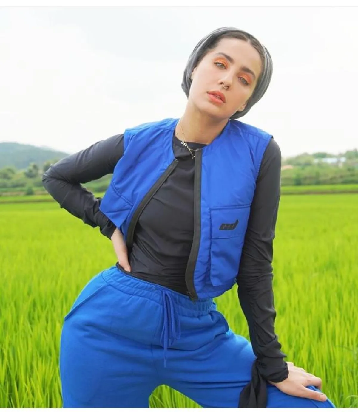 أما الفاشينيستا المصرية سهر فؤاد فقد اختارت اطلالة رياضية من الدرجة الأولى، للبنطلون المقاوم للماء الملون، مع توب أسود قطني، وتيشرت ربطته على الخصر ليتناسق مع البنطلون الضيق ويمنحها اللوك المحتشم، ثم أكملت الاطلالة بالحذاء الرياضي الأبيض.