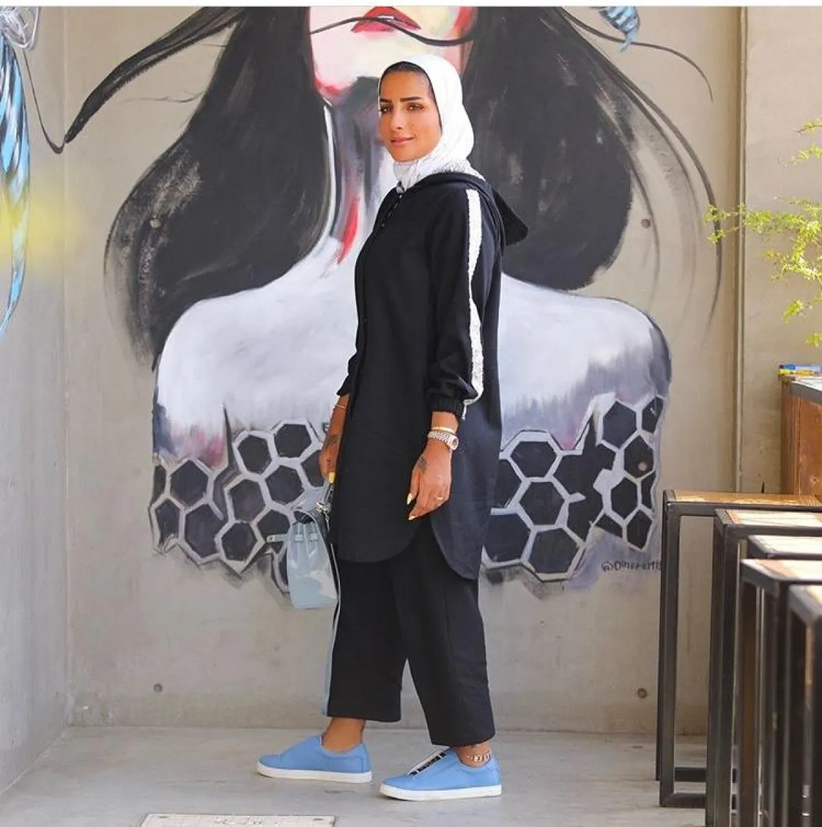 أعجبنا اختيار الفاشينيستا فطامي بو حمد للاطلالة الرياضية المريحة، التي لا تحتاج للكثير من التنسيق، والتي تتلخص في اختيار السويت شيرت الطويل، الذي يناسب البناطيل الضيقة المخصصة للرياضة، لاطلالة مريحة وتبدين فيها أنحف أيضًا.