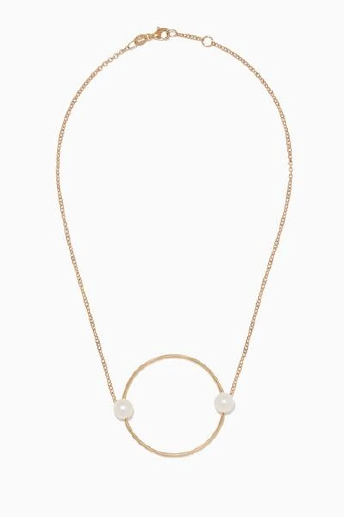 لن تكتمل إطلالاتك الجامعية لعام 2020 بدون هذا التشوكر choker من علامة ناتاشا شفايتزر Natasha Schweitzer المبتكرة لأكسسوارات فاخرة. تم تصميمه من الفضة الإسترلينية المطلية بالذهب عيار 14. وتتكون من سلسلة رفيعة متصلة بحبتين من لؤلؤ المياه العذبة تزينان الحلية المتدلية المستديرة.