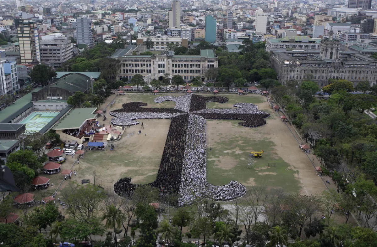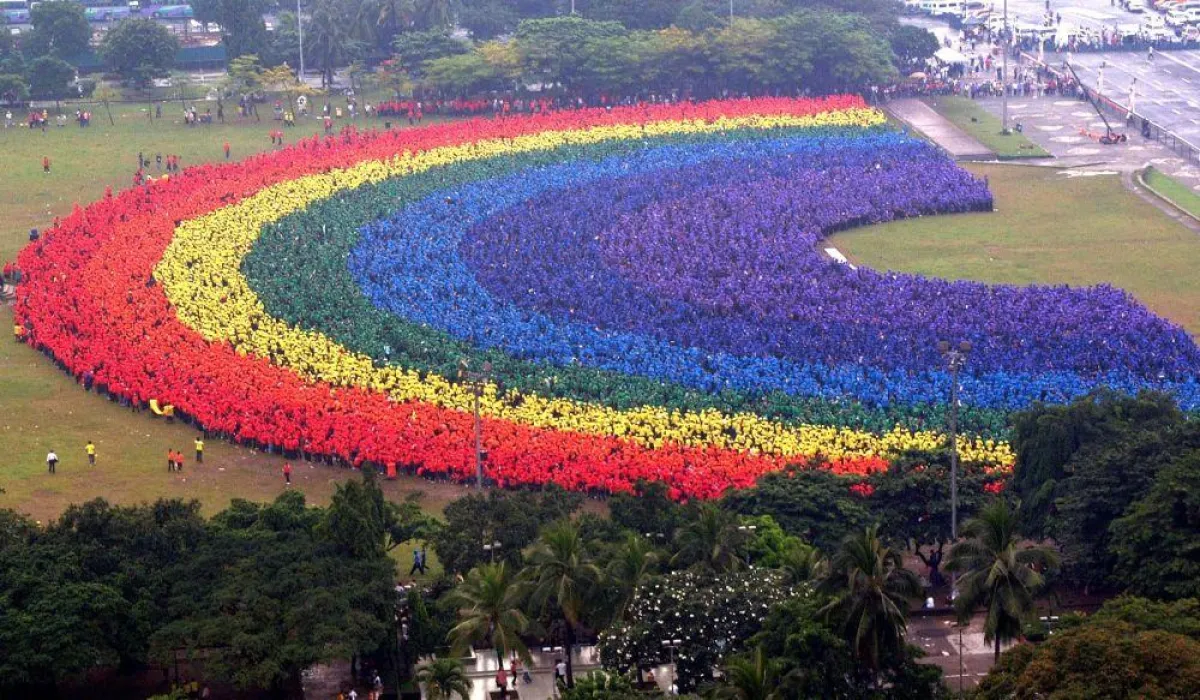 12- قام حوالي 31 ألف طالب ومدرس وخريج من جامعة الفلبين للفنون التطبيقية بإنشاء «قوس قزح بشري» في حديقة مانيلا المركزية، الفلبين عام 2004.