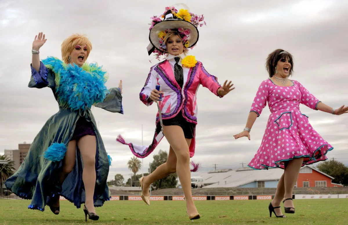 14- «الأخوات الذكور» في ملبورن على وشك الانضمام إلى باقي مسيرة «أكبر عدد من الناس يركضون مرتدين الكعب العالي»، عام 2010.