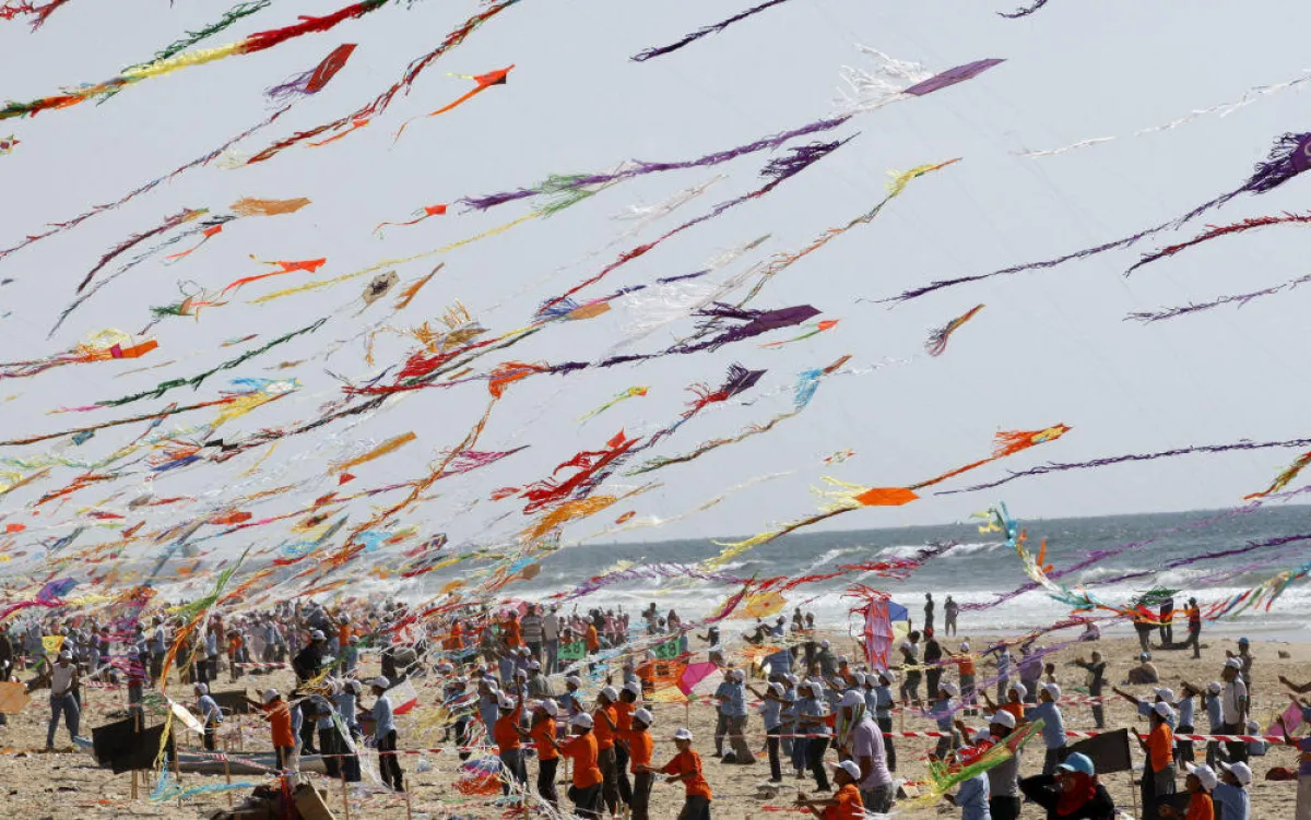 11- أطفال يطلقون الطائرات الورقية (7200 طائرة) في محاولة لتحطيم الرقم القياسي العالمي لأكبر عدد من الطائرات الورقية التي يتم إطلاقها في وقت واحد، بيت لاهيا، قطاع غزة عام 2010.