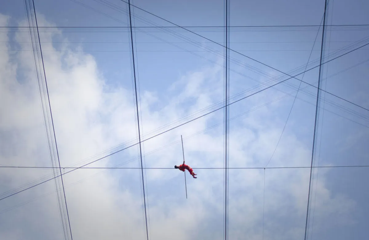 4- أديلي فوكسور ينام على حبل معلق في الهواء بعد مسيرة دامت شهرين في بكين، عام 2010.