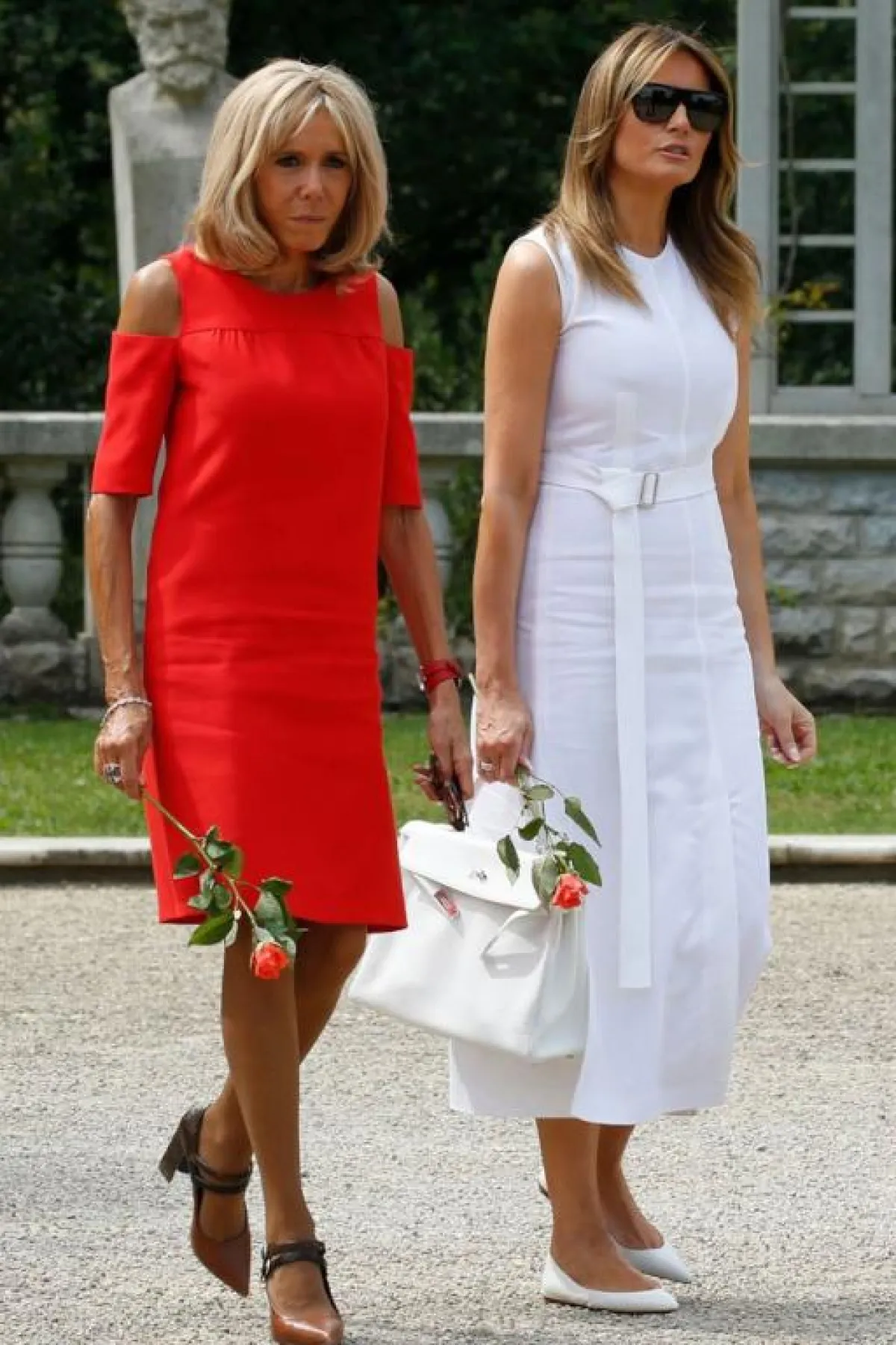 مؤخرًا وفي المؤتمر الذي جرى في فرنسا شاهدنا كلًّا من ميلانيا ترامب Melania Trump وبريجيت ماكرون Brigitte Macron في اطلالات صباحية عملية وأنيقة، وقد اختارت الأولى فستان ماكسي باللون الأبيض بتصميم ناعم مزين بحزام على الخصر، وقد نسقت معه حذاءً من دون كعب وشنطة يد من الجلد من “هرمس” Hermes، أما الثانية فقد اختارت فستانًا باللون الأحمر مكشوف الأكتاف، وطوله وصل حدّ الركبة وقد نسقت معه حذاءً بكعب عالٍ من الجلد باللون البني.