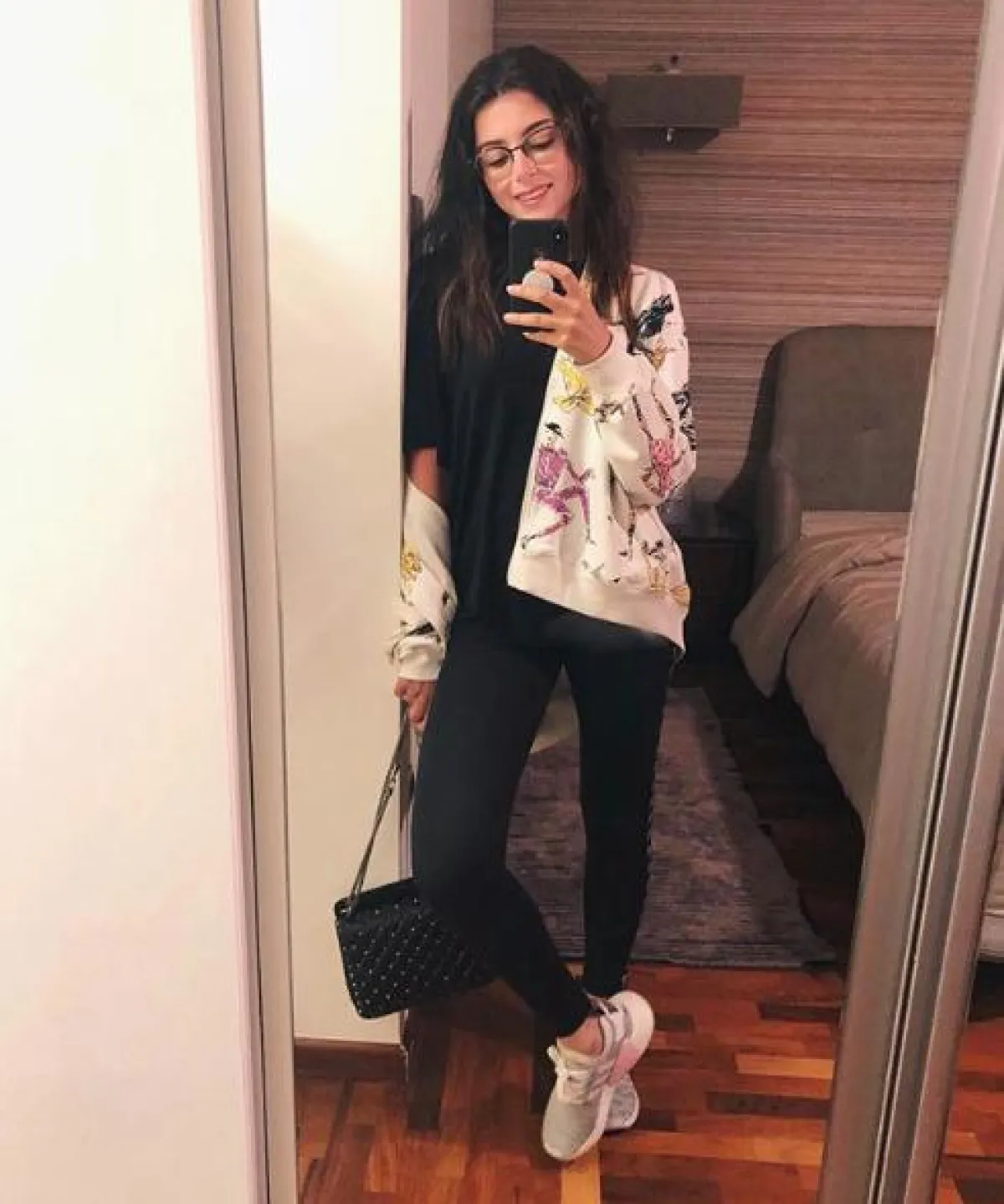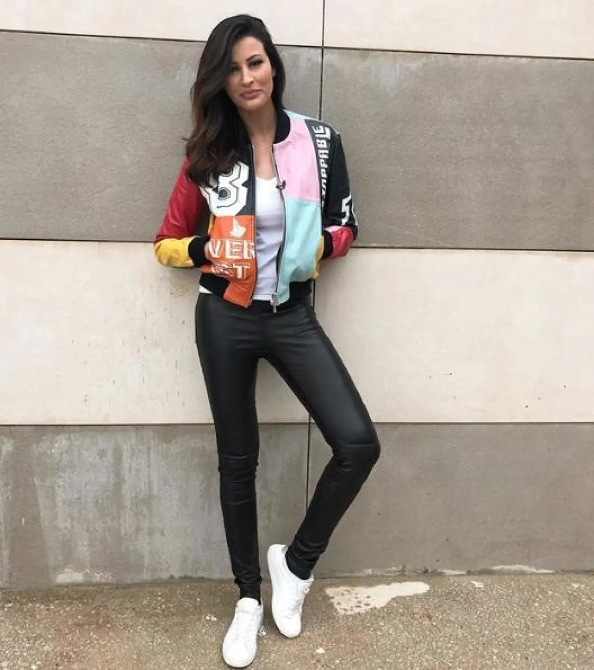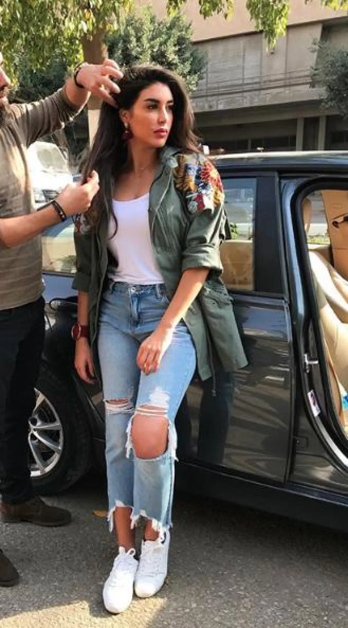 ريم سعيدي من النجمات الشابات اللواتي يُعتبرن الأكثر أناقة، وكثيرًا ما تكون اطلالاتها مصدر وحي لبنات جيلها، والجامعيات أيضًا من الممكن أن يستوحين منها بعض الأفكار المميزة، مثل هذه الاطلالة التي نسقت فيها بنطلون سكيني من الجلد الأسود، مع توب قطنية بيضاء، ومن فوقها جاكيت بومبر ملون بتصميم عصري، وأكملت اللوك بحذاء رياضي أبيض.