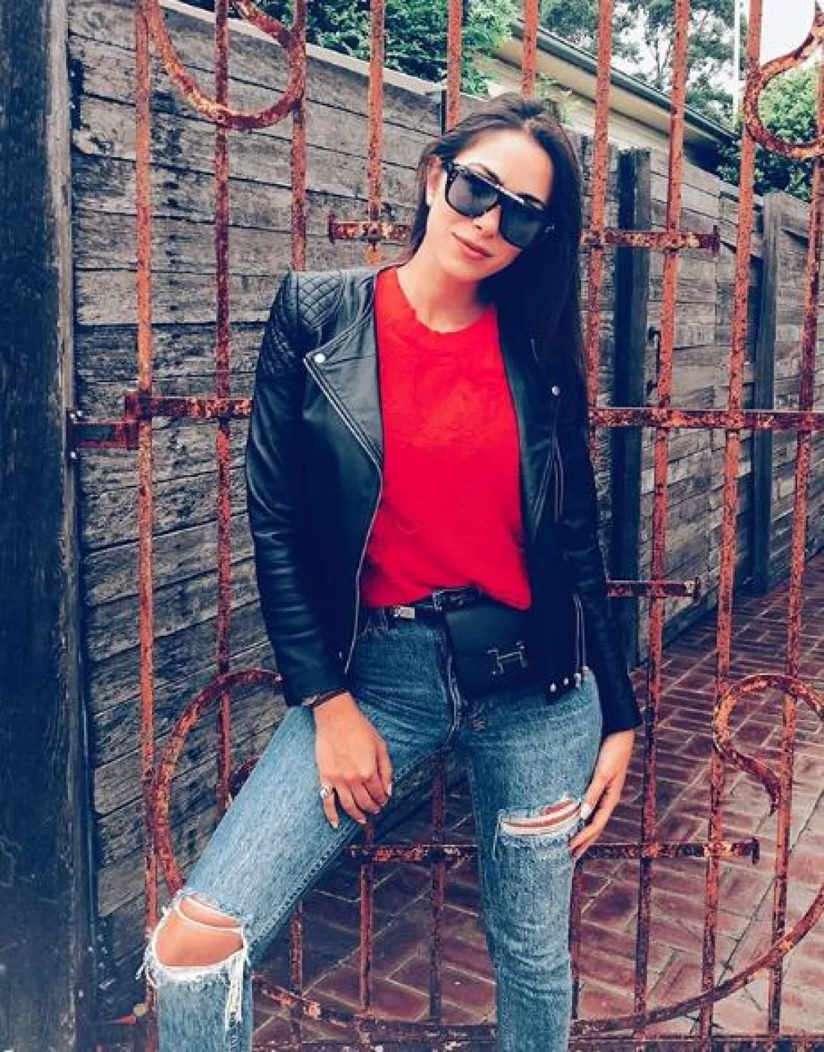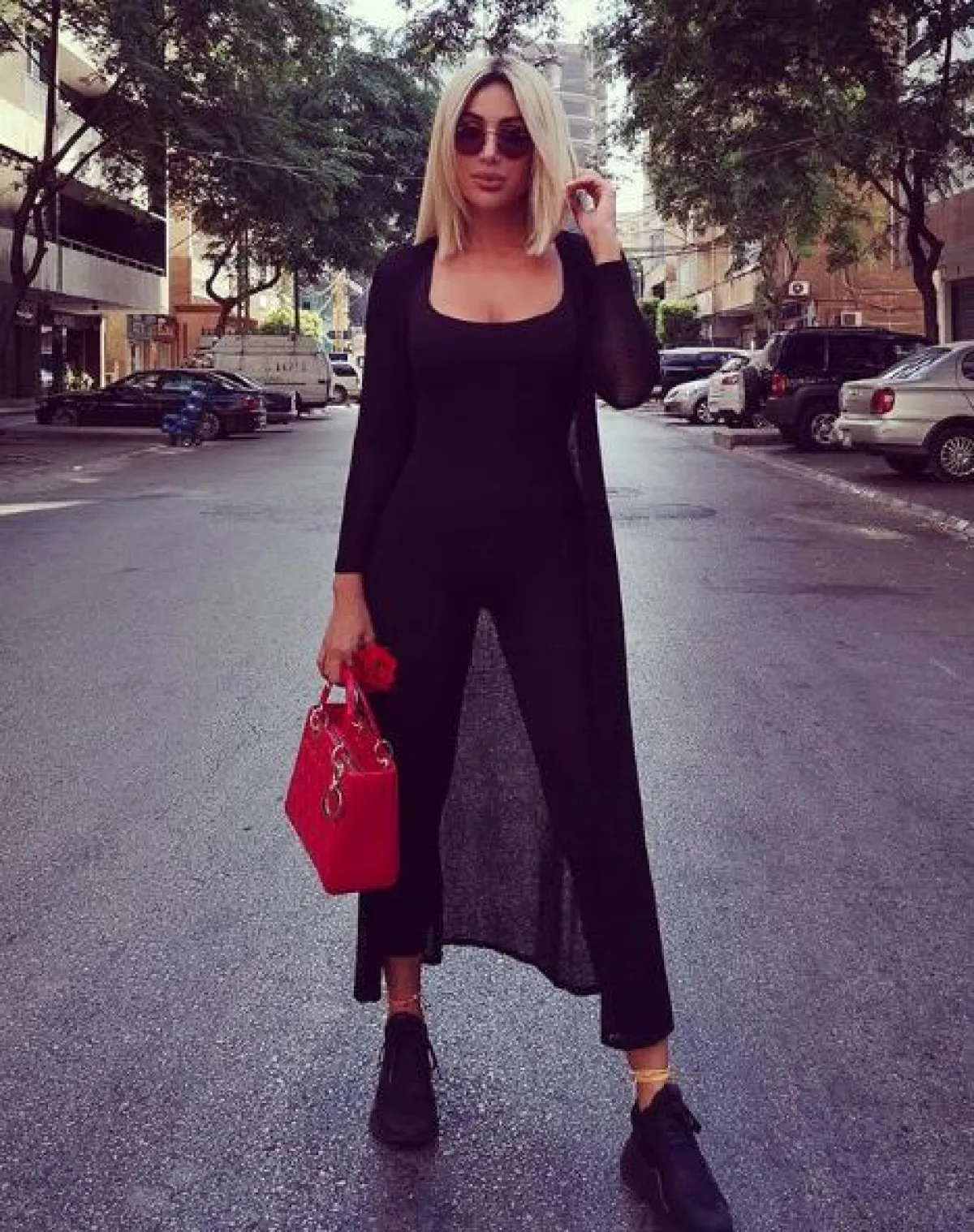 تنسيق عصري في البنطلون الجلدي بأسلوب ريم سعيدي