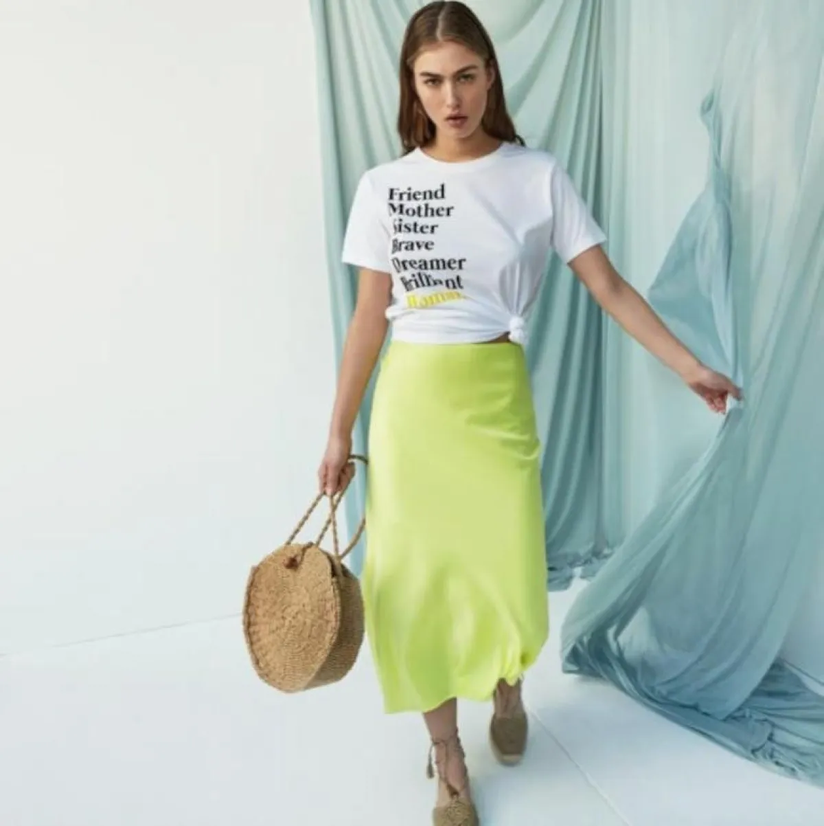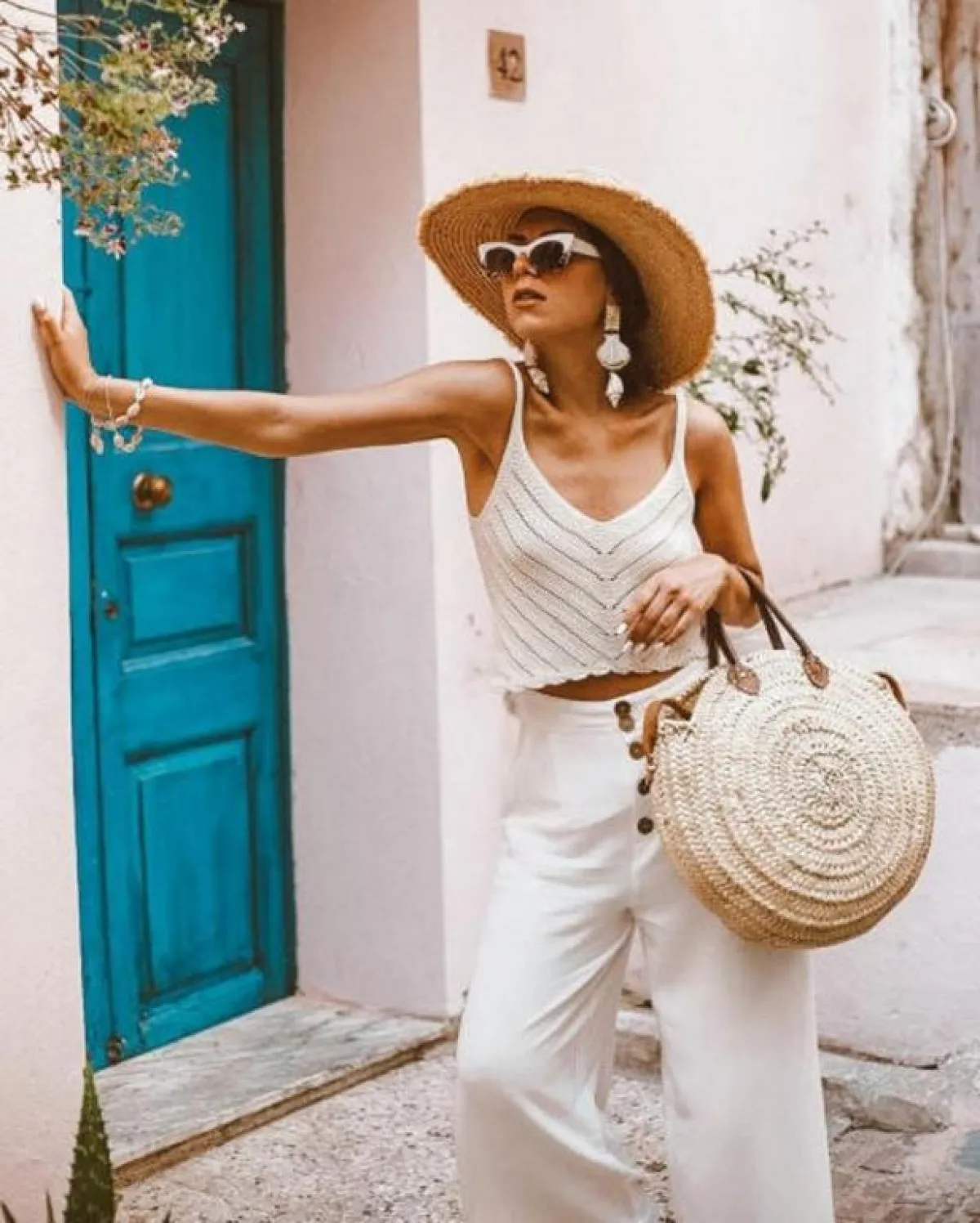 -نسقيها مع البنطلون الواسع والتوب القصير لتتألقي بشكل عصري، أيضا اختاري تنورة بإحدى ألوان النيون مثل الأخضر ونسقي معه توب واصطحبي الحقيبة الخوص في يديك.