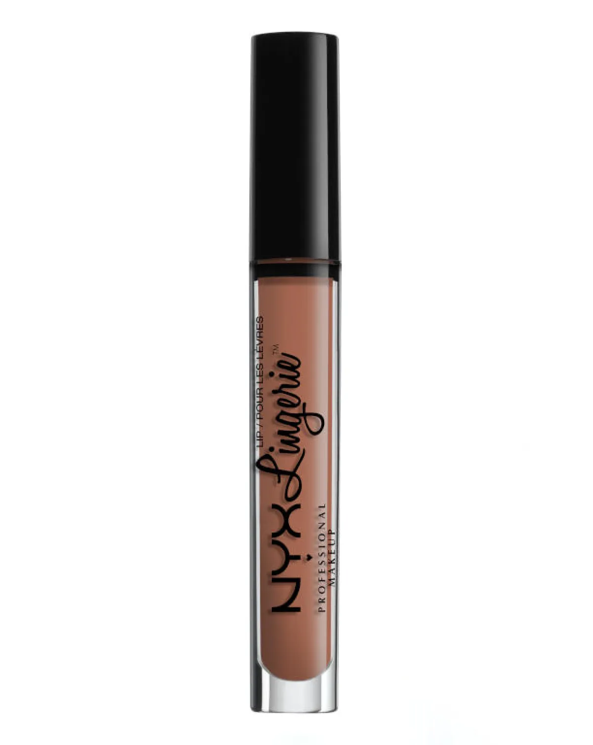 أحمر شفاه NYX Lingerie بدرجة البيج، يناسب مكياجك البرونزي مع فستانك الذهبي.
