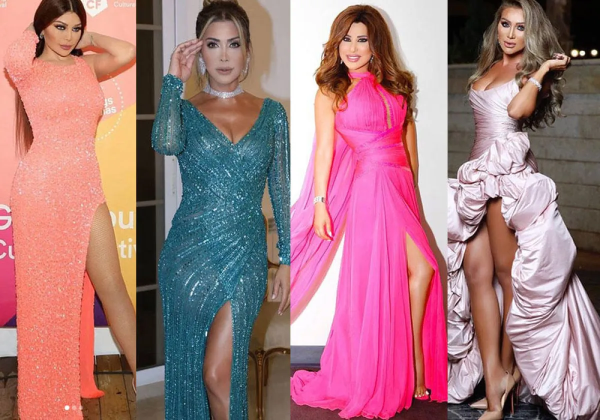 ظهرت سيرين عبد النور مؤخراً بفساتين خطوبة أنيقة بشق جانبي طويل.