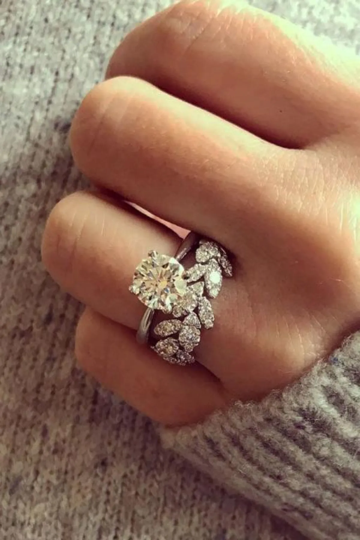 ولكن يمكنكِ اختيار تصميم أكثر فخامة، بأن تعتمدي الدبلة المرصعة بالأحجار على شكل فروع الأشجار، هذه الدبلة يمكنك ارتداؤها دائمًا طوال الوقت، من دون أن تعتمدي معها خاتمًا ماسيًّا، أو احصلي على اطلالة مضاعفة مع خاتم فخم.