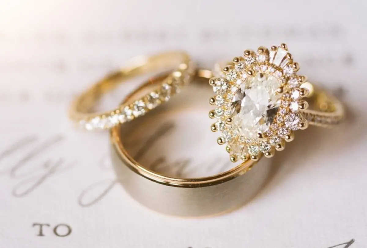 يمكنكِ اعتماد الشكل الكلاسيكي للدبلة باللون الذهبي، مع الأحجار الماسية صغيرة الحجم المرصعة على الدبلة بالكامل، لاطلالة تجمع بين النمط الكلاسيكي والعصري، ومن الممكن أن تعتمدي معها خواتم ذهبية أو فضية اللون، فدمج اللون الذهبي مع الفضي من الصيحات المميزة لدبل خطوبة 2019.