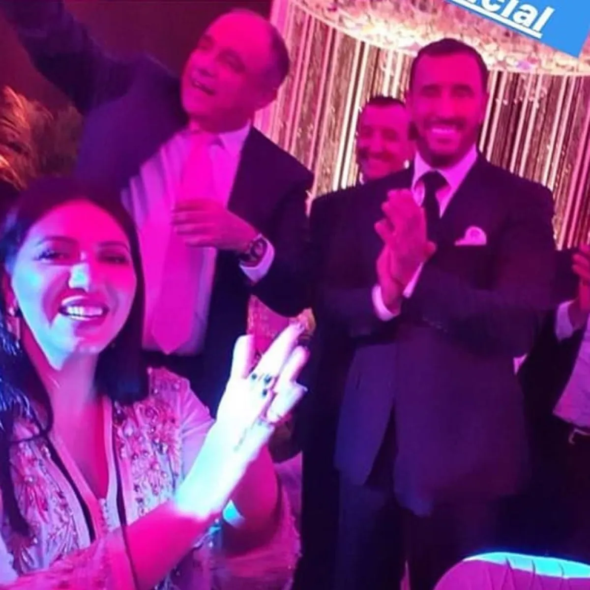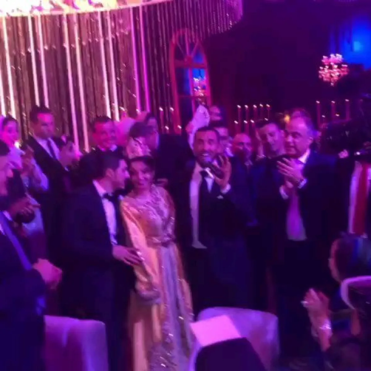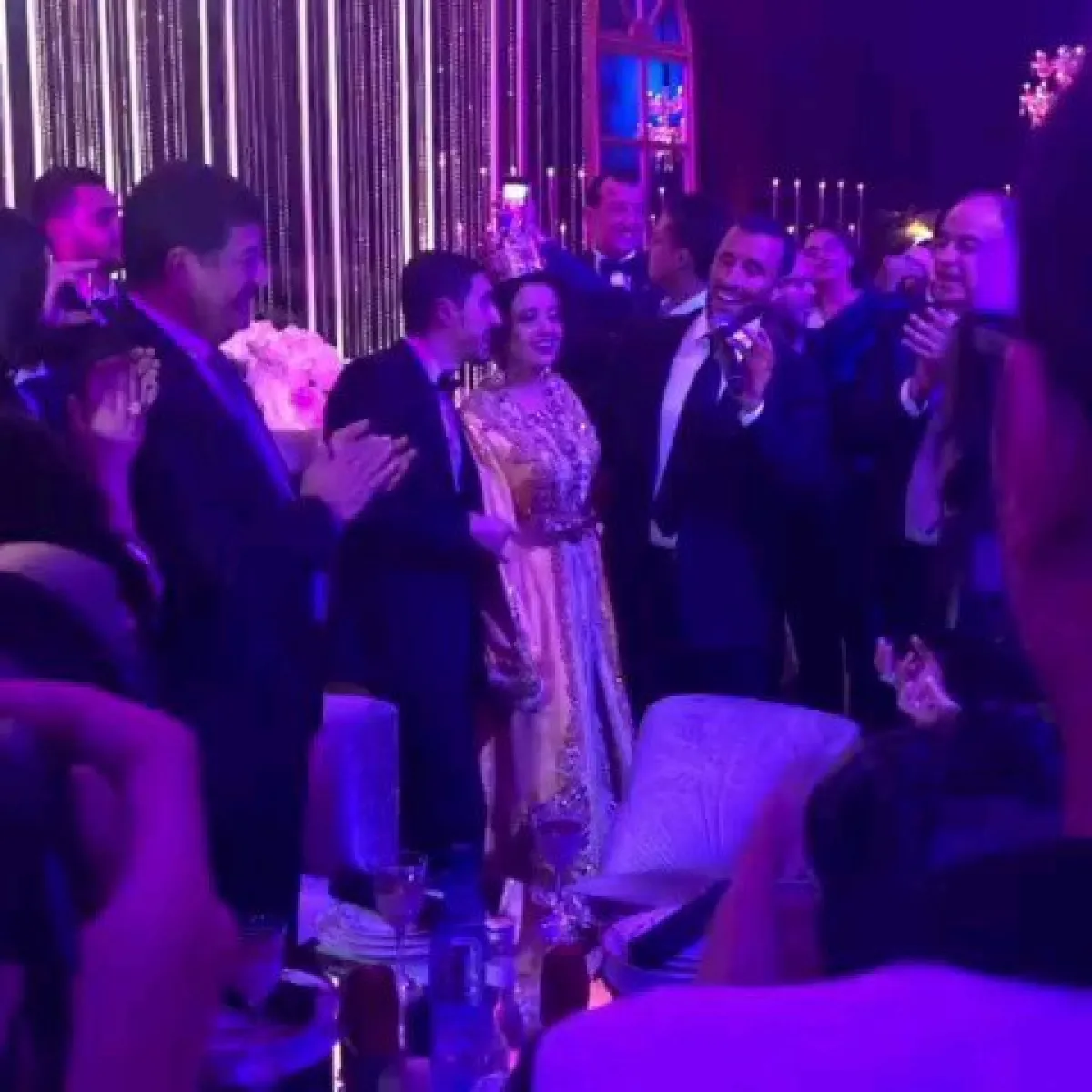 الحفل أقيم مساء الجمعة وبدا بالزفة المغربية التقليدية، وظهرت العروس بفستان زفاف مصمم وفقا للتقاليد الأمازيغية، بينما ارتدي العريس بدلة أفراح تقليدية ولم يظهر بالزي العراقي كما روج البعض، وشارك في حفل الزفاف يونس الرباطي واسماء المنور وطارق برداد عضو فرقة فايف ستار وميشيل الحايك.