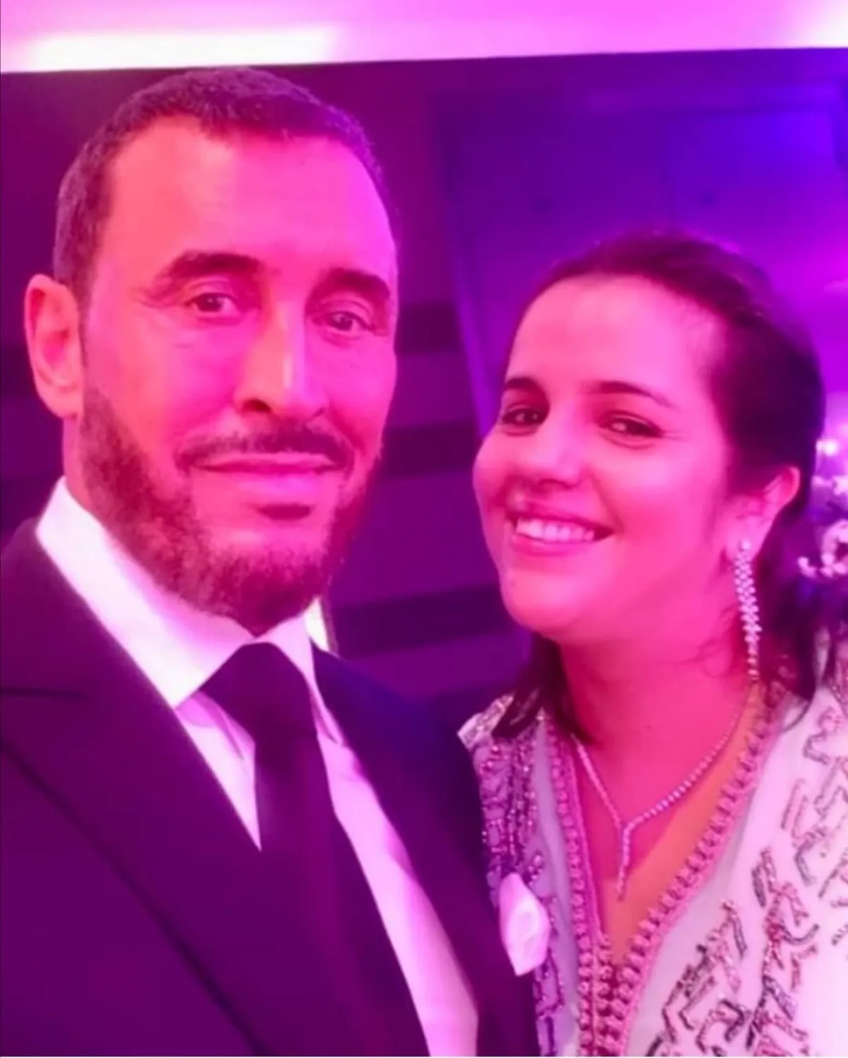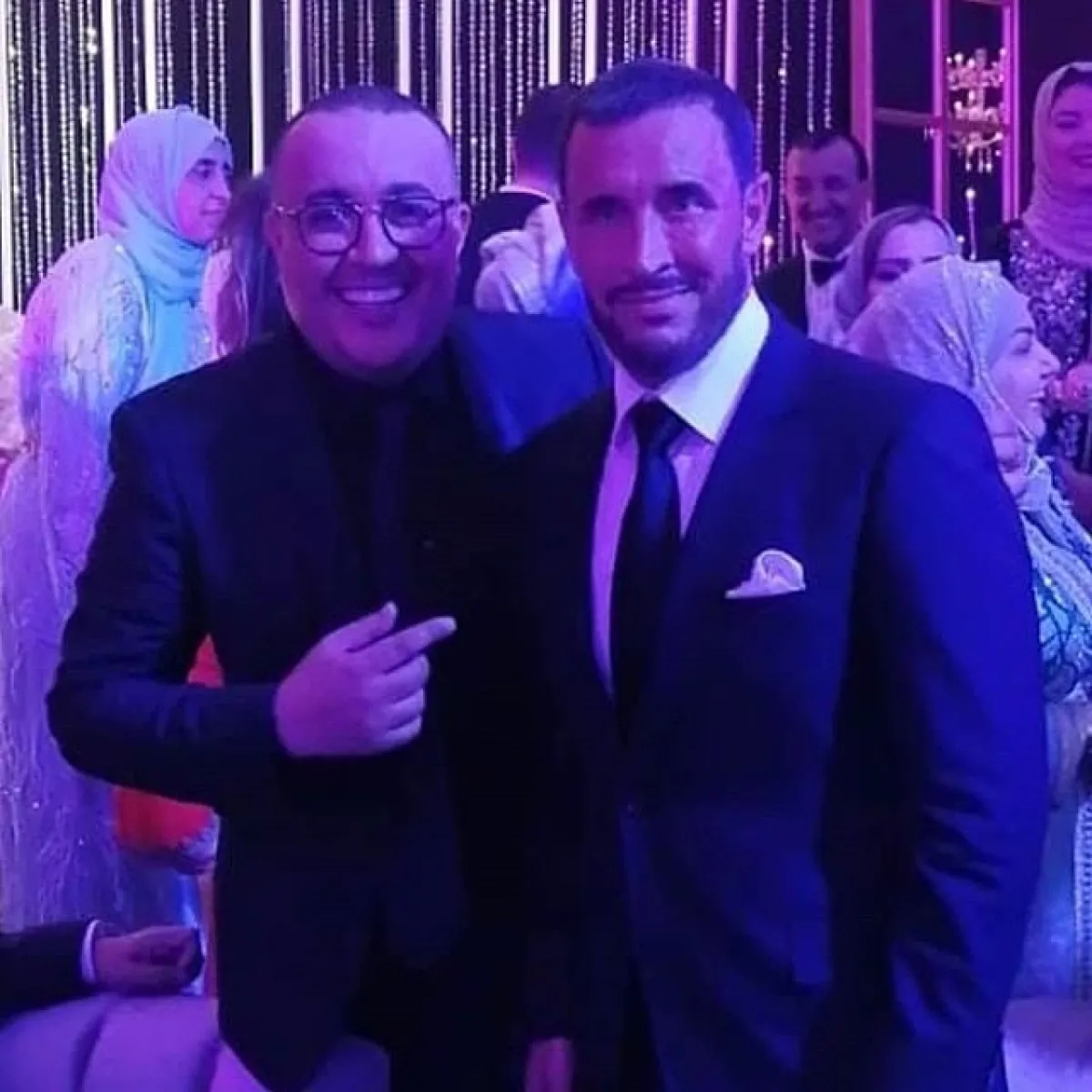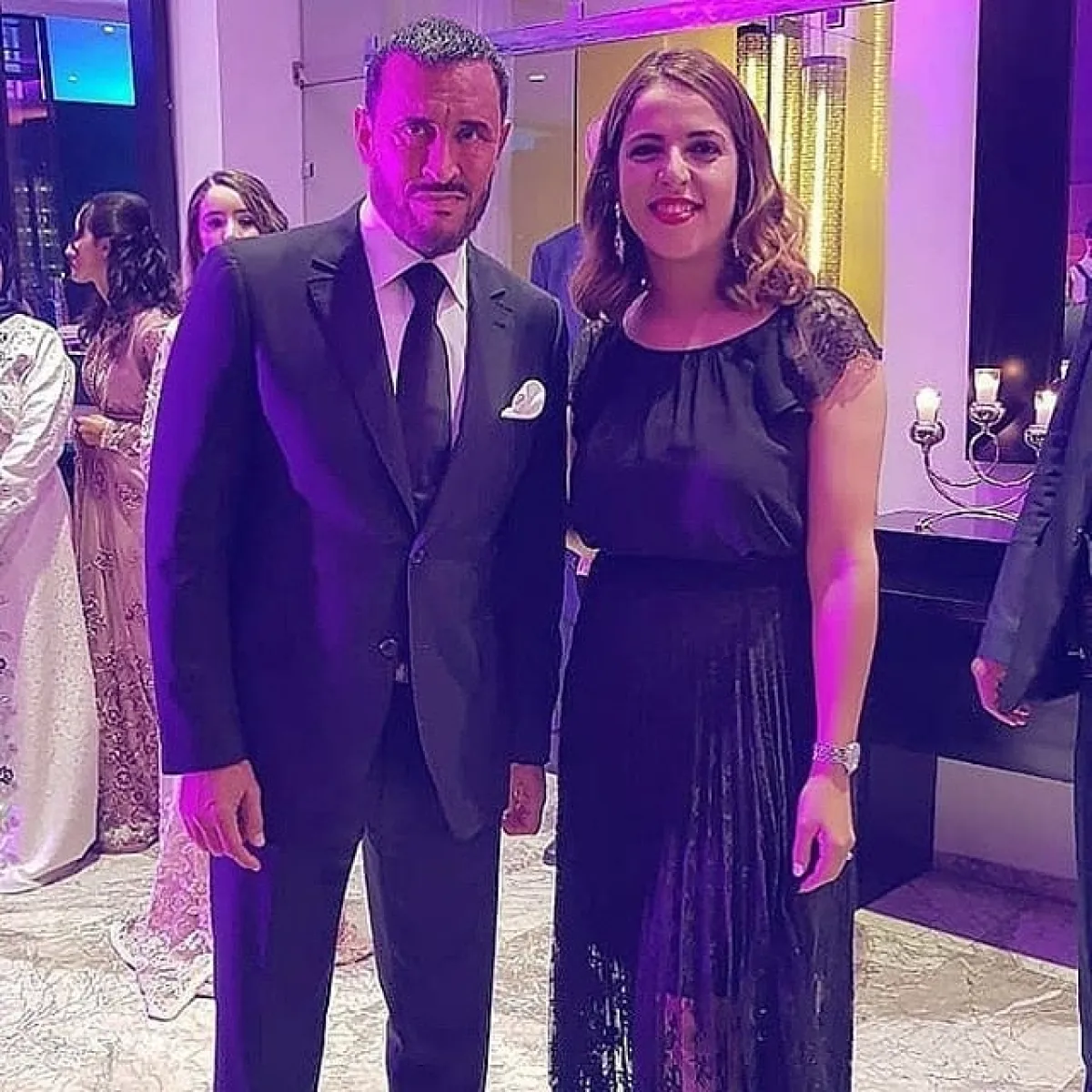 الحفل أقيم مساء الجمعة وبدا بالزفة المغربية التقليدية، وظهرت العروس بفستان زفاف مصمم وفقا للتقاليد الأمازيغية، بينما ارتدي العريس بدلة أفراح تقليدية ولم يظهر بالزي العراقي كما روج البعض، وشارك في حفل الزفاف يونس الرباطي واسماء المنور وطارق برداد عضو فرقة فايف ستار وميشيل الحايك.