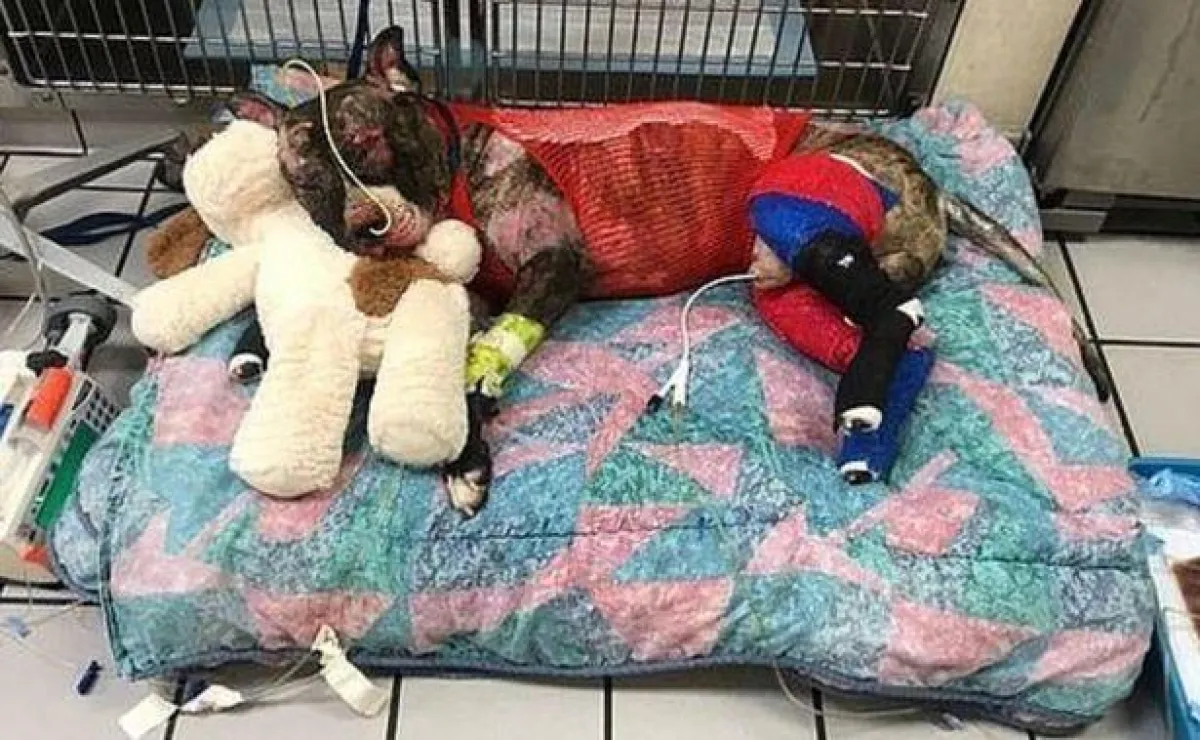 وبالفعل حضرت إسعاف وحدة الخدمات البيطرية التي قامت بإنقاذ الكلب، لكنه عانى من حروق وصلت لنسبة 40 في المئة من جسمه.