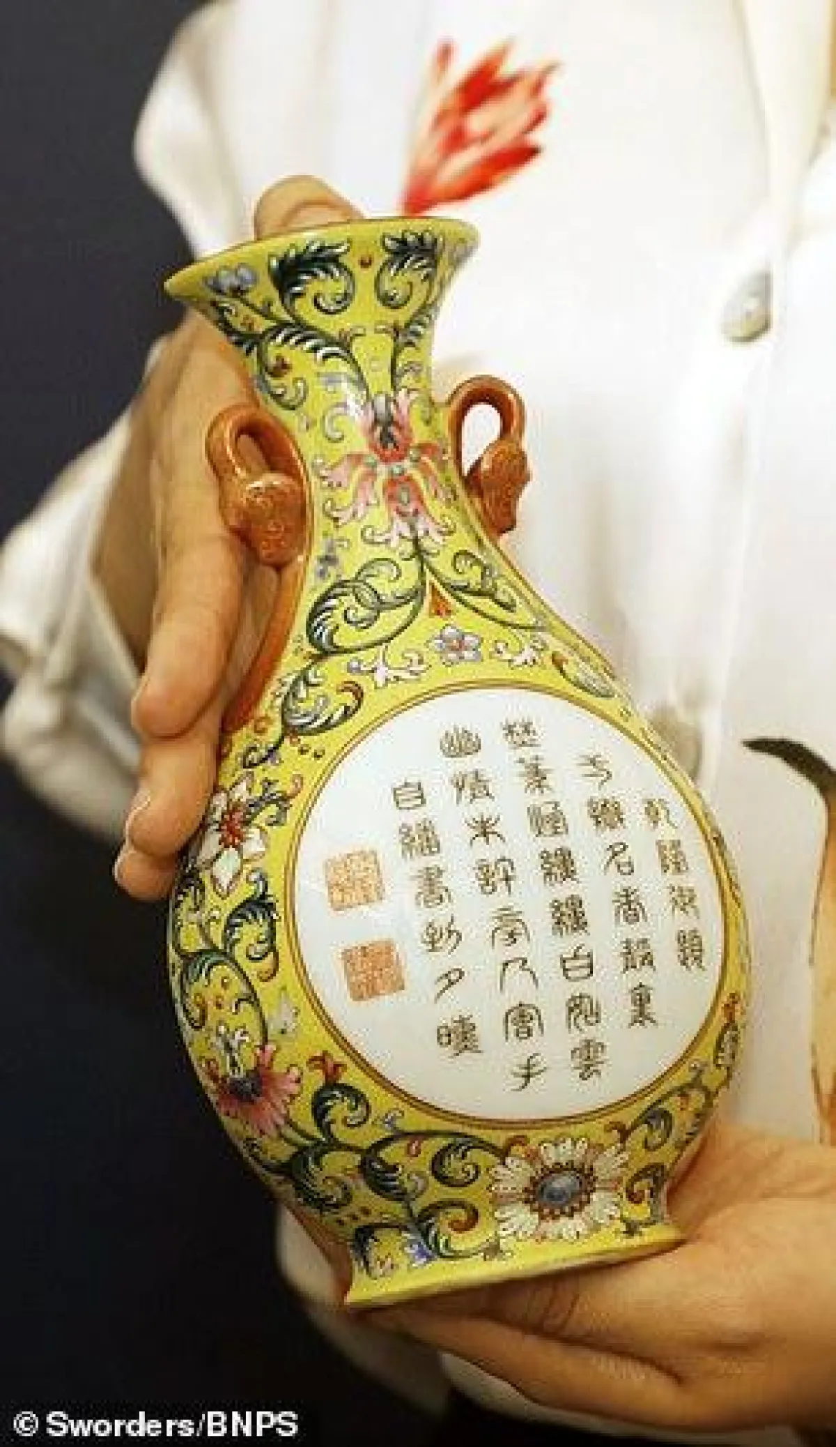 فالمزهرية صنعت للإمبراطور الصيني تشيان لونغ في القرن الثامن عشر، الذي حكم بين عامي 1753 و1796.