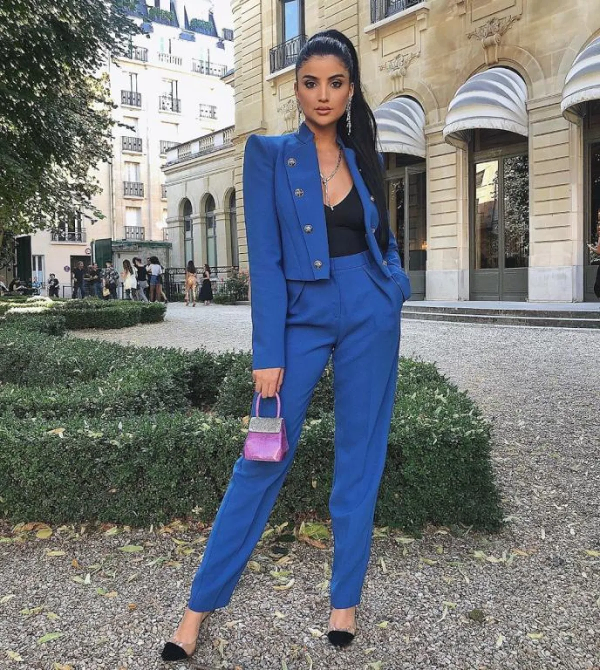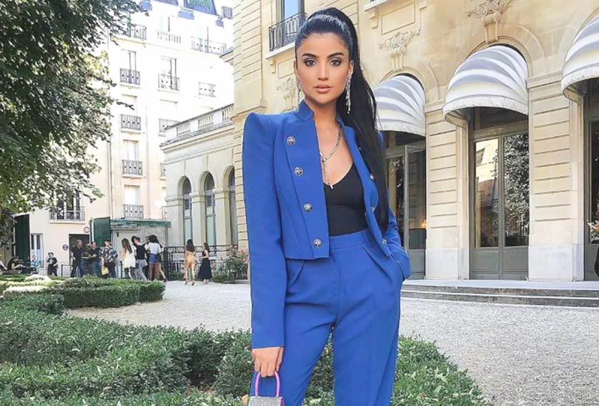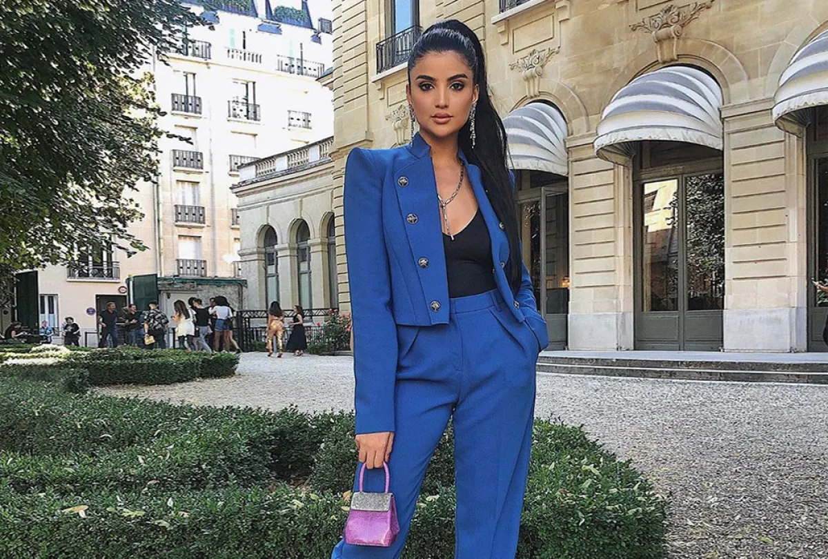 كذلك، اعتمدت الفاشينيستا الكويتية فاطمة المؤمن، الصيحة نفسها لكن على طريقتها. اختارت بدلة من الكتان، مصممة من سترة أو بليزر وصل بالكاد إلى الخصر، مع أكمام متوسطة الطول، أما البنطلون فجاء أيضًا بتصميم عصري مناسب للاطلالات الصباحية، بعيدًا عن رسمية البدلات الكلاسيكية، حيث جاء بخصر عالٍ مع طيات وأزرار أمامية، أضافت لاطلالتها مزيد من التفاصيل.
