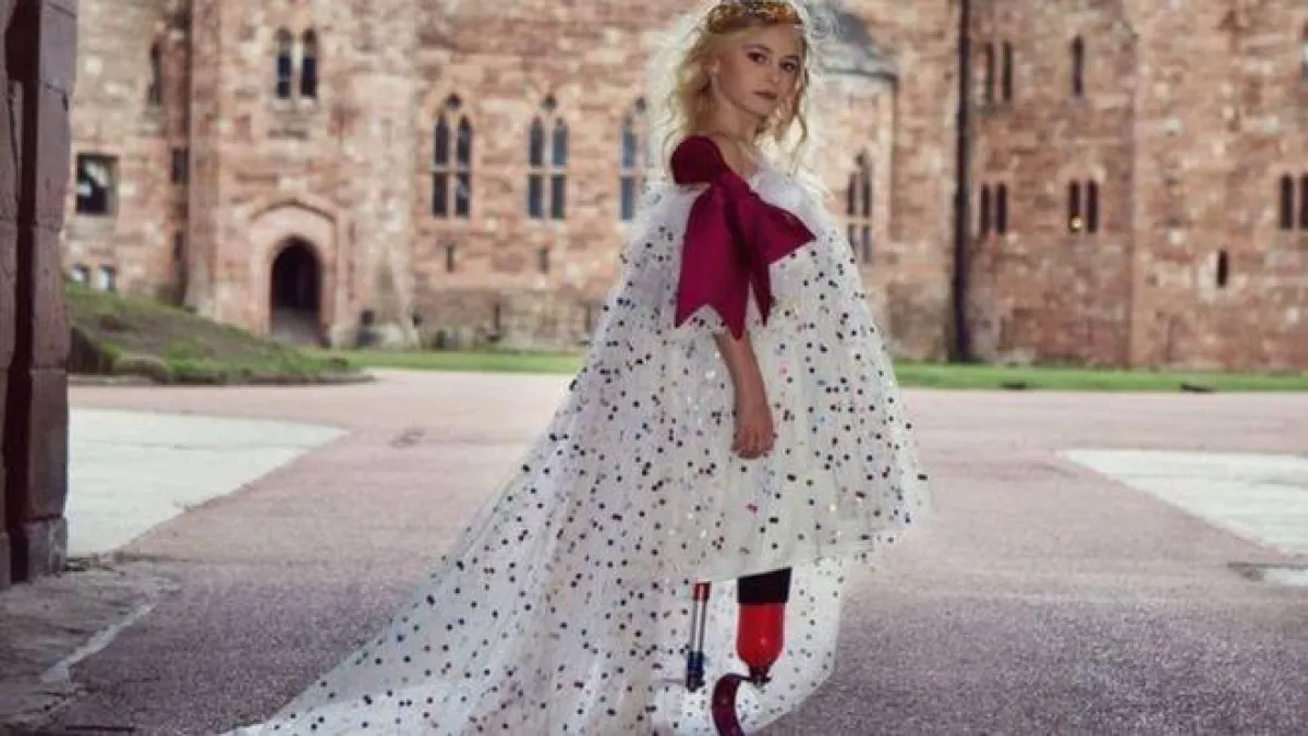 حيث ستصبح الطفلة البريطانية، ديزي ماي ديمتيري، أول طفلة مبتورة الساقين تسير على مسرح عرض الأزياء بأسبوع الموضة في نيويورك بالولايات المتحدة الأمريكية.