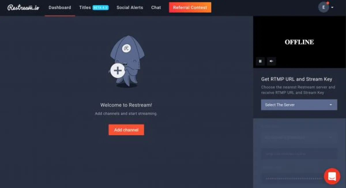 بعد أن يقوم بإعداد برنامج البثّ الخاص به على البثّ إلى Restream، سيحتاج إلى إعداد القنوات التي يرغب في تشغيلها.