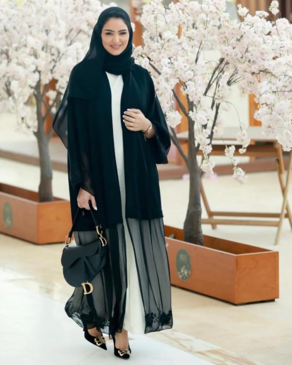 إن كنت ترغبين بارتداء سروال يظهر من تحت العباية، اختاري عبايتك باللون الأسود الشفاف أو فقط بقماش شفاف في القسم السفلي لتظهري جمال سروالك ولتتألقي بحذاء أنيق.