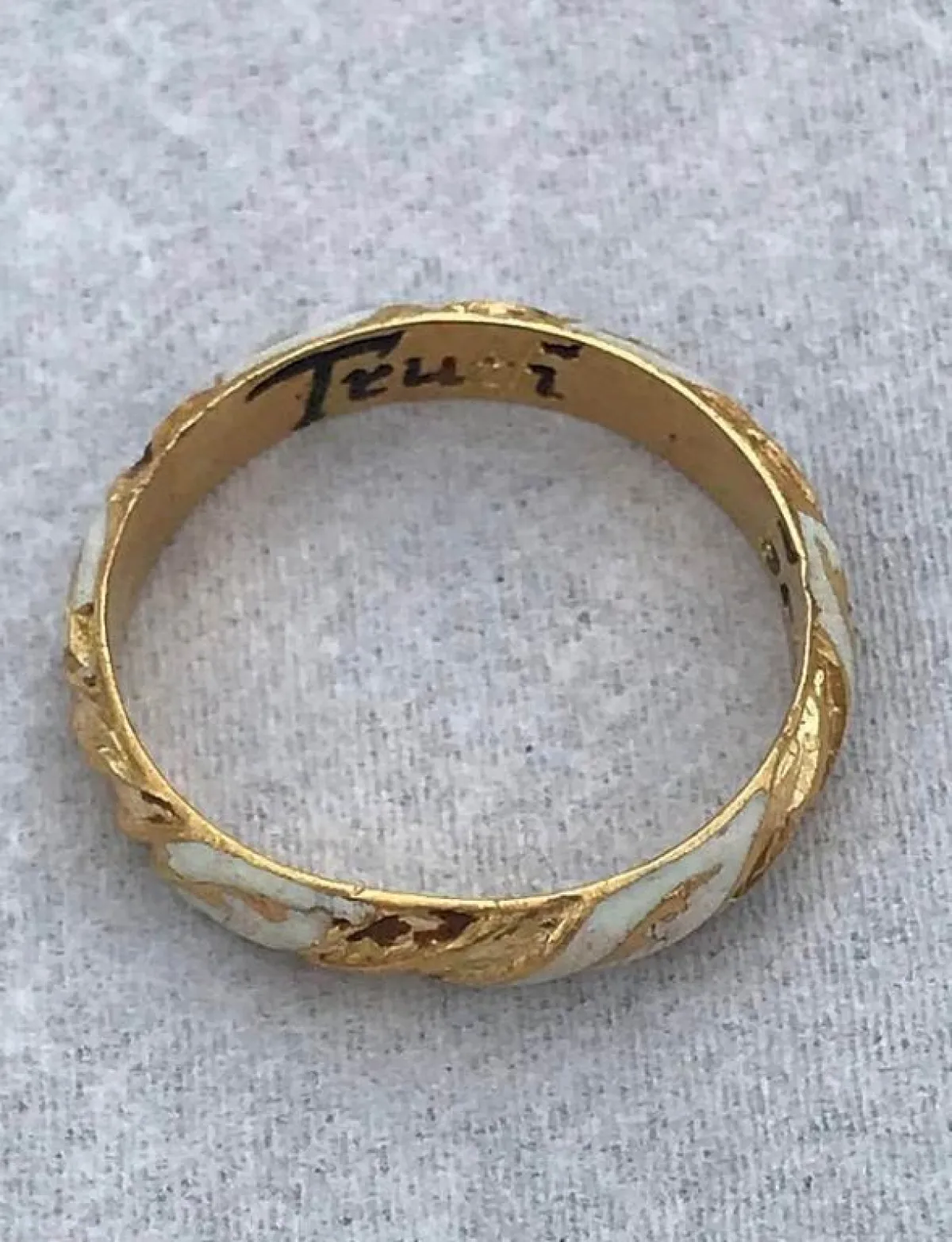 وأشارت السيدة البريطانية إلى أنها لحظة عثورها على الخاتم المصنوع من المينا الحمراء والبيضاء الرقيقة على الخاتم الذهبي. اعتقدت في بداية الأمر أنه سقط من أحد الأشخاص، أو أنه لعبة للأطفال. إلا أن شكوكها تبددت عندما لاحظت وجود نقوش قديمة على الخاتم، وهي عبارة «الحقيقة لا تخون». إذ تبيّن أن هذه النقوش تعود إلى الحقبة التي عاش فيها شكسبير. وعقب ذلك توجهت كيلفرت إلى متحف برمنغهام، الذين بدأوا دراسة الخاتم لاكتشاف تاريخه وإن كان حقاً يخص المسرحي الإنجليزي الأشهر في العالم.
