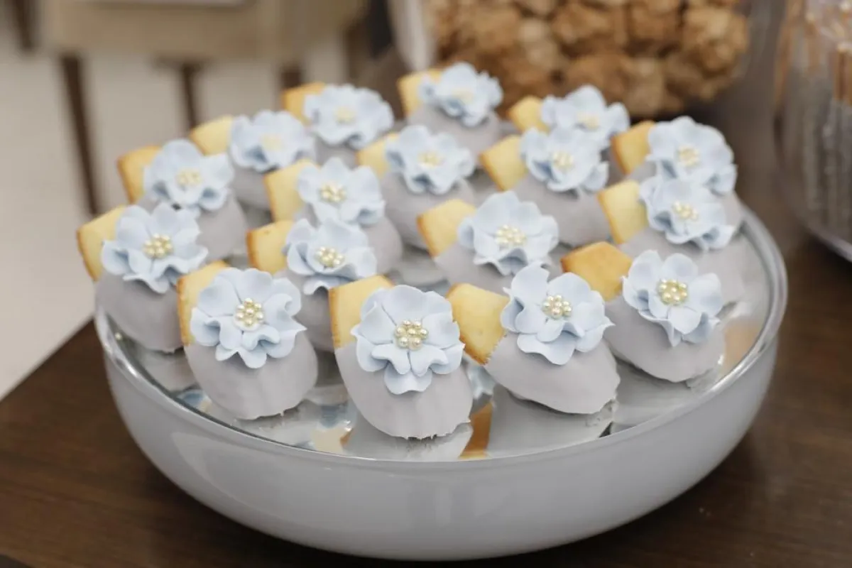 -يمكن للعروس إضافة لمسة خاصة ومميزة على زينة الشوكولاته، من خلال اختيار حجر البورسلان أو حبات اللؤلؤ الناعمة.