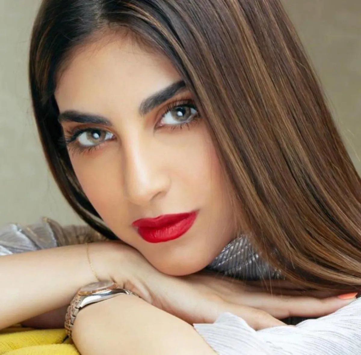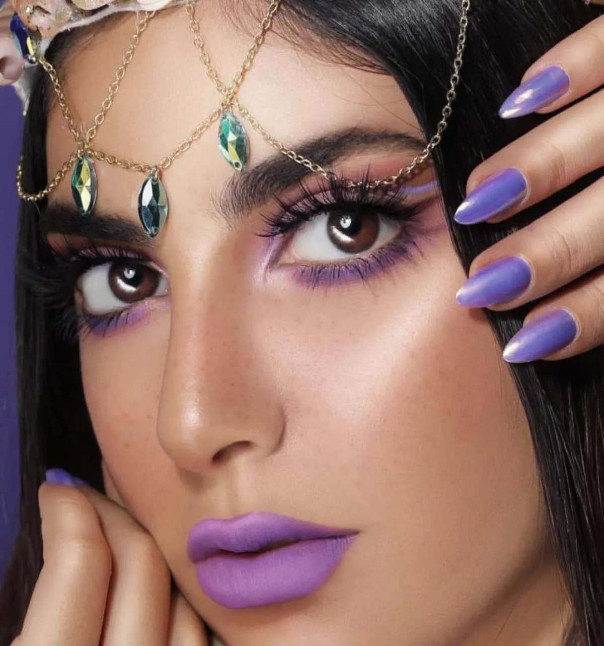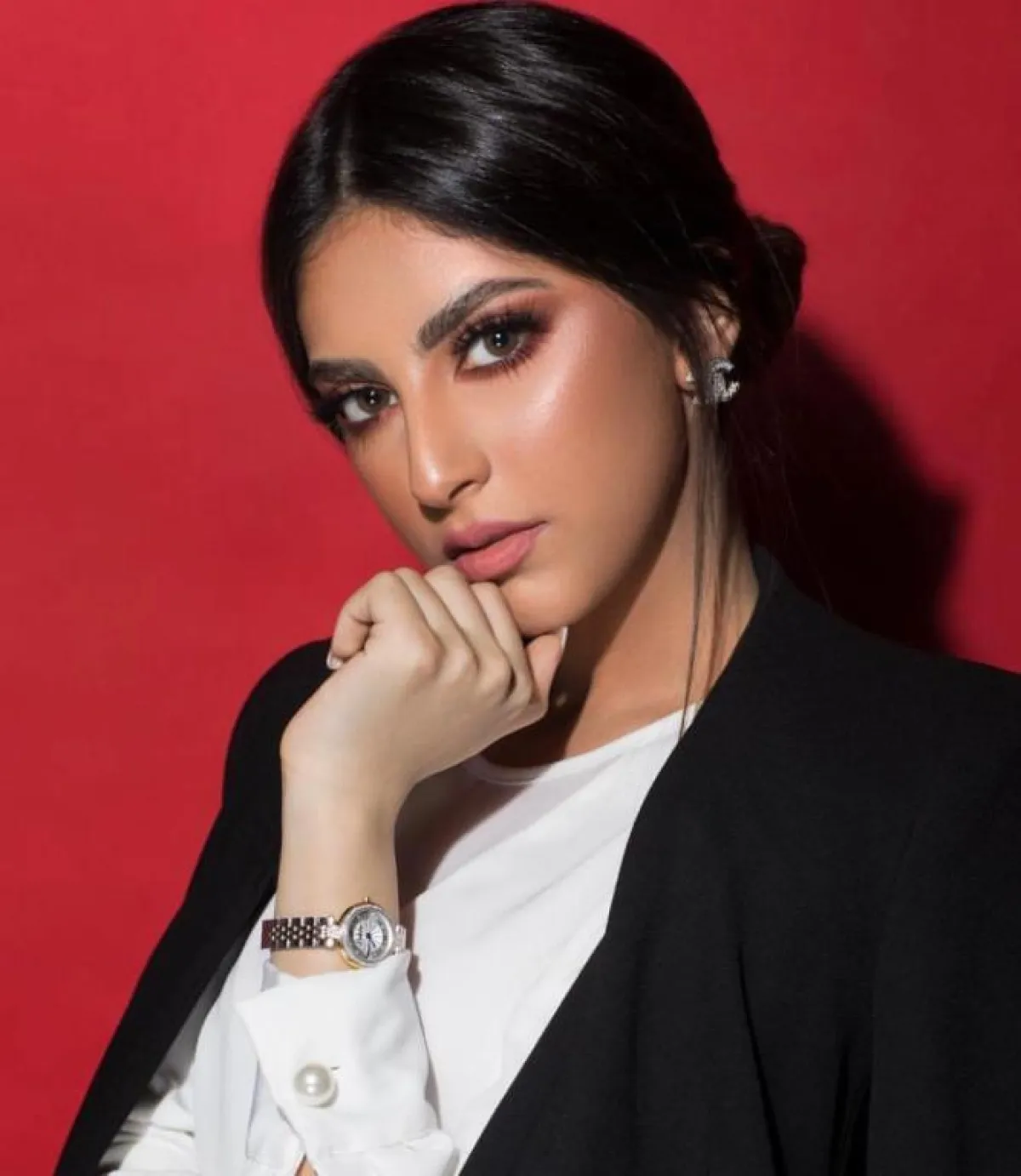 في حين ظهرت بإطلالة عصرية مميزة برسم نمش خفيف في خديها، وأحمر شفاه بنفسجي، وظلال أعين زهري أكملته برسم خطوط بنفسجية مسحوبة في كسرة العين وأسفلها، ولون زهري في مدمع العين، وفي إطلالة أنثوية وضعت أحمر شفتين زهريًّا، ووضعت اللون البني في خديها وفي العينين، ووضعت درجة بني فاتحة جدًّا أسفل الحاجب، كما تجمَّلَتْ بمكياج بني أنيق في الشفتين والعينين والخدين وماسكرا سوداء، ولمكياج أنثوي للمناسبات وضعت اللون البنفسجي في الشفتين، والزهري في الخدين، والبني في الجفن، وأكملت ذلك باللون الأبيض في مدمع العين وأسفل الحواجب.
