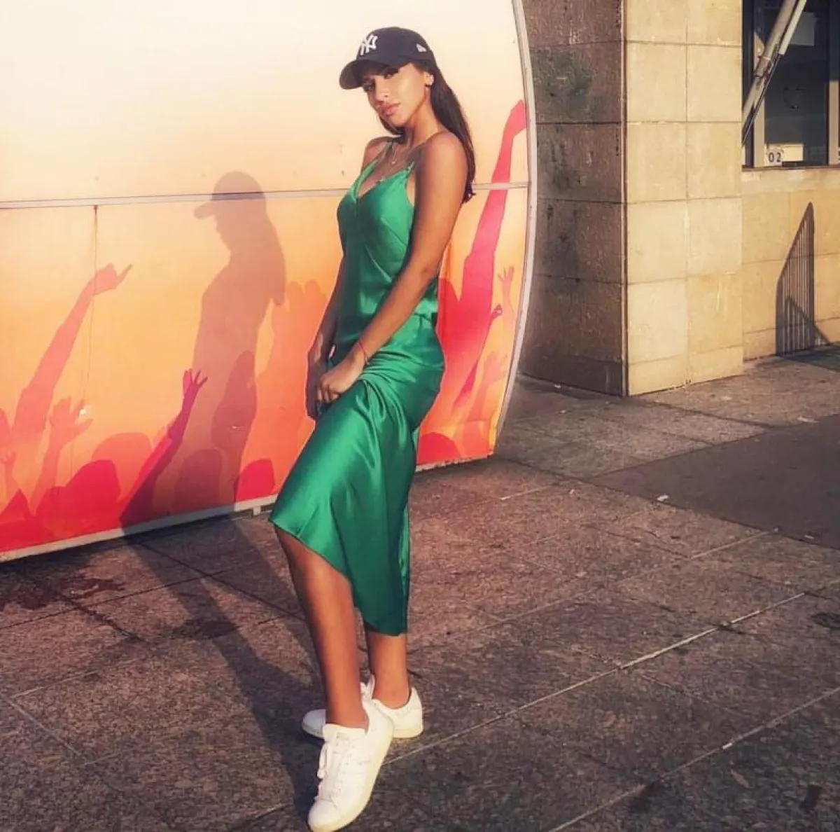 أما هلا عبد الله فظهرت بفستان أخضر قصير بأكمام طويلة وحذاء بوت بُني يُكمل أناقتها، ونَسَّقَت فستانًا حريريًّا ناعمًا مع كاب وحذاء رياضيَّيْن.