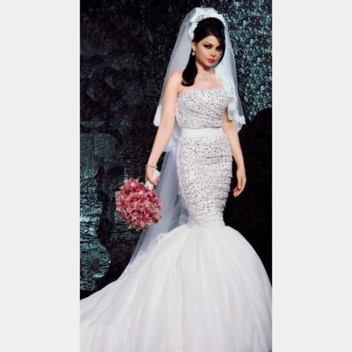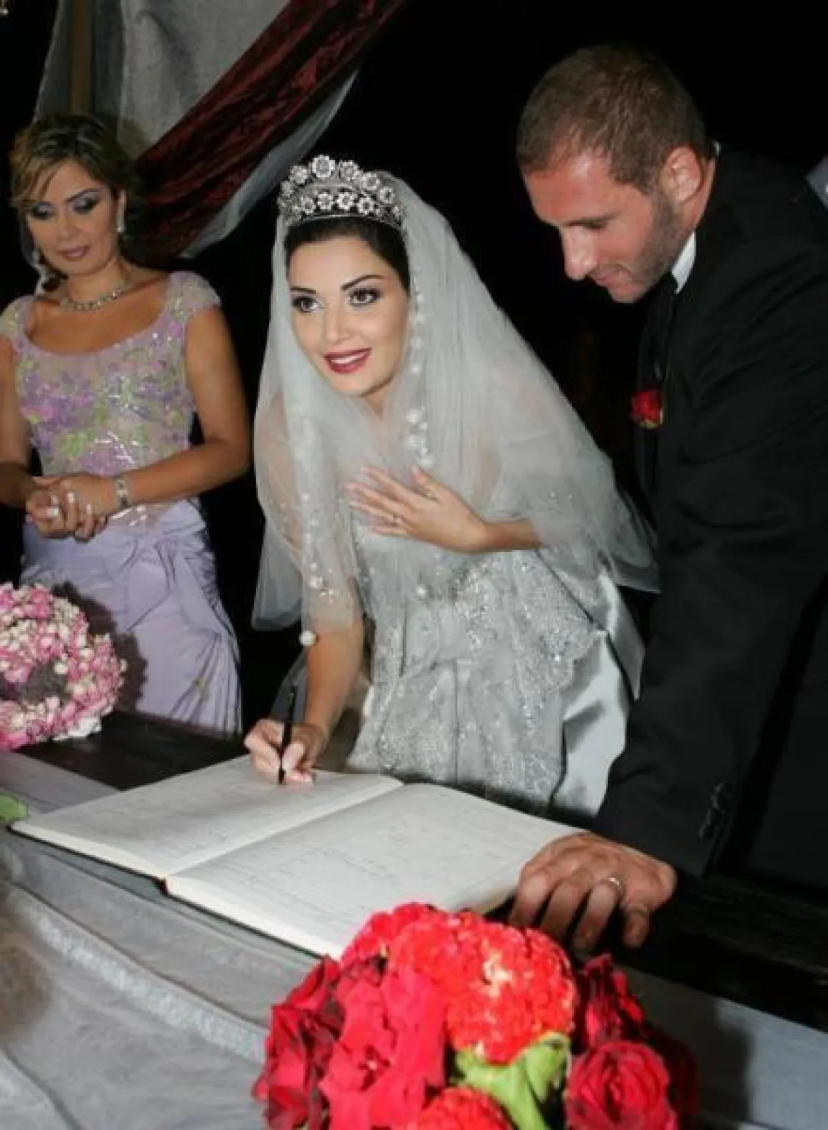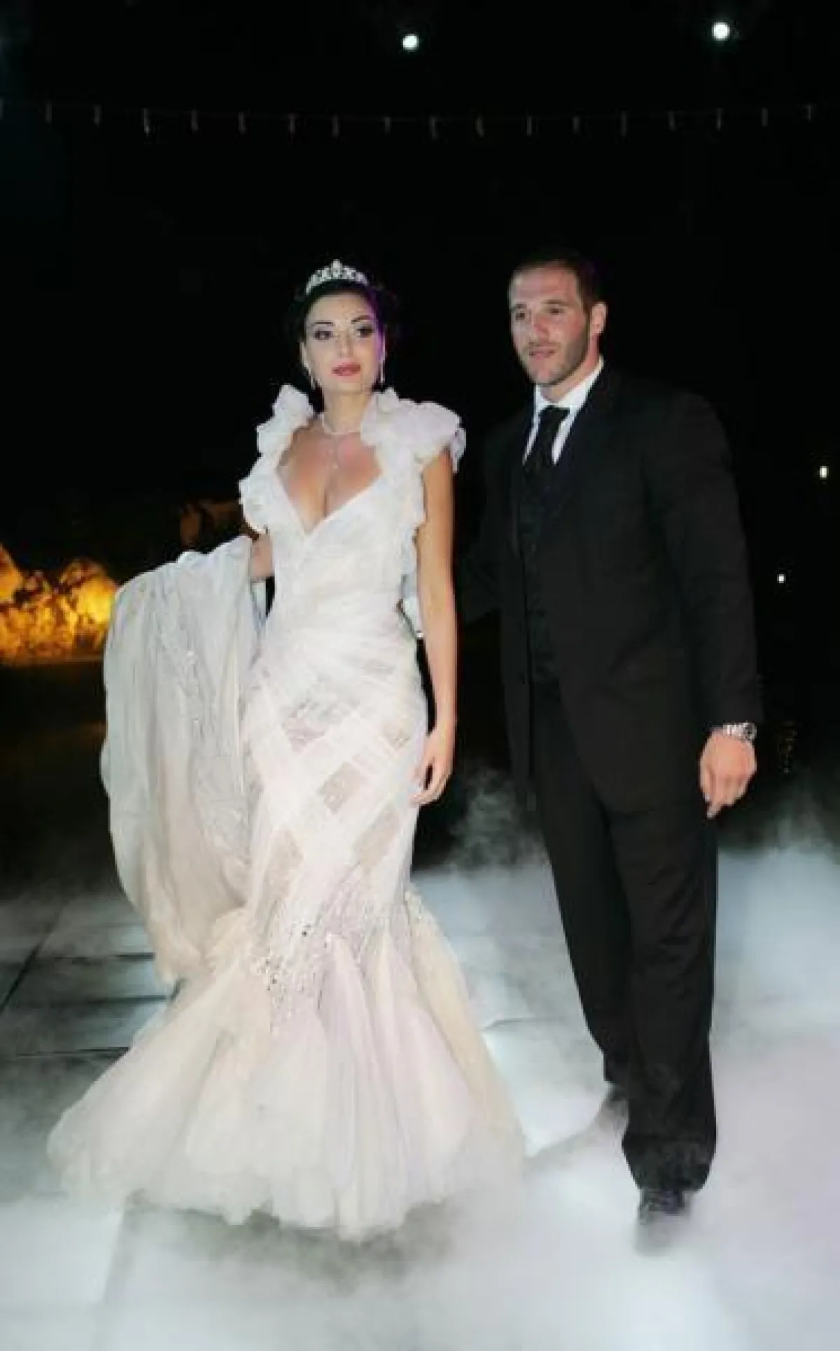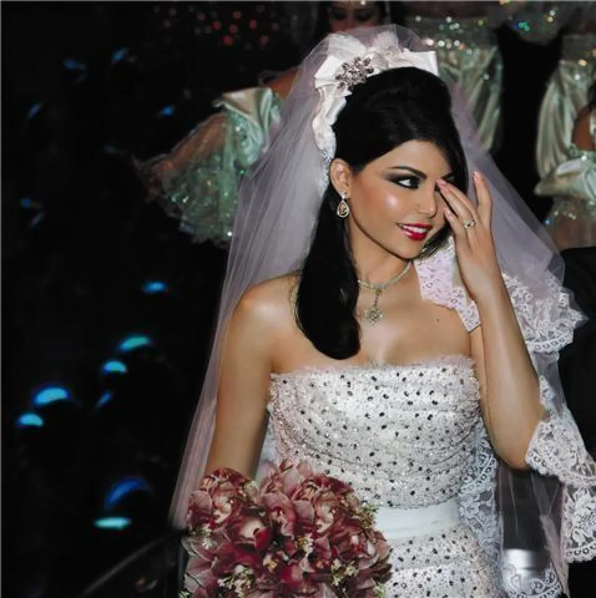 تألقت هيفاء وهبي في زفافها بفستان أنثوي أبرز قوامها الممشوق وخصرها النحيل.