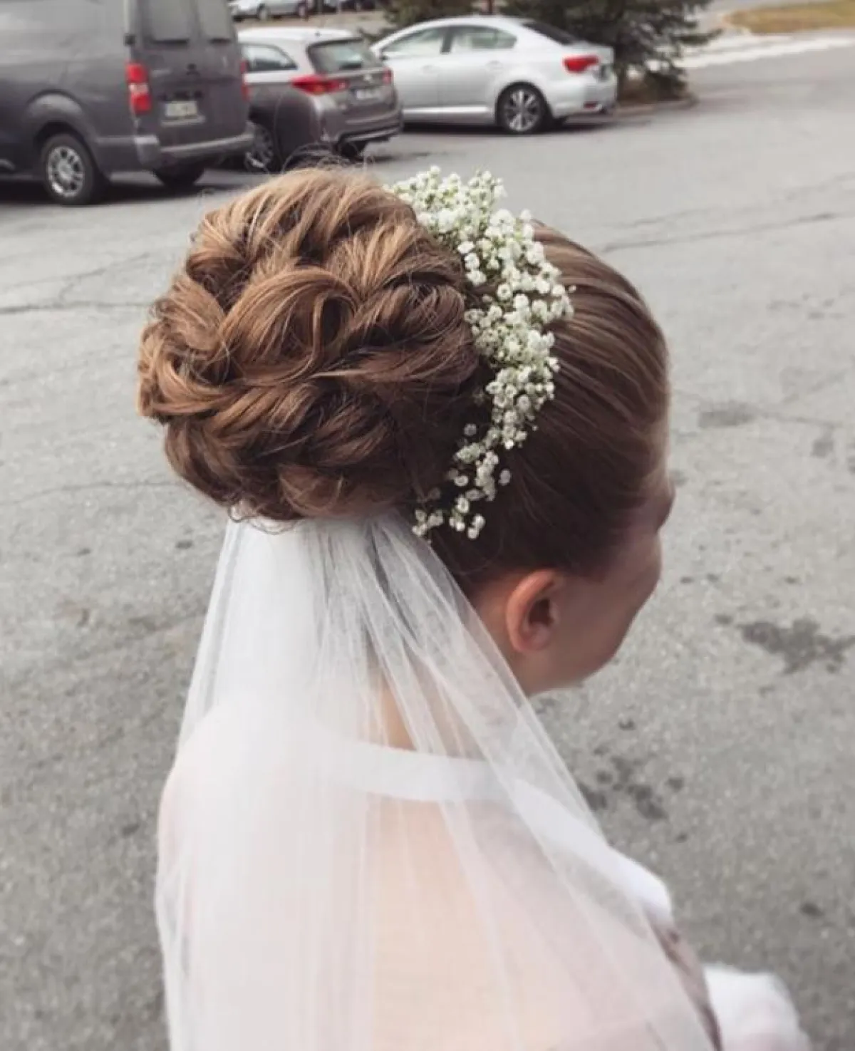 وهذه التسريحة تناسب أكثر صاحبات الشعر الطويل، وتعتمد على الكعكة العالية والكثيفة، مع اكسسوارات الشعر التي تزينها، والطرحة المنسدلة من أسفل الكعكة، وهي من التسريحات المستوحاة من فترة الثمانينيات.