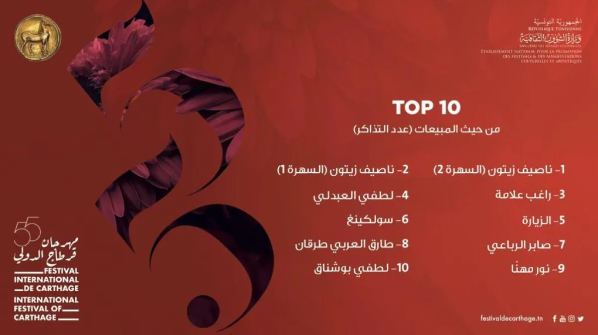 تفوق النجم ناصيف زيتون هذا الصيف على نفسه في الحفاظ على المركز الأول والثاني في سهرات مهرجان "قرطاج"، وينافس كبار النجوم، وحشد ناصيف لنفسه قاعدة جماهيرية كبيرة في تونس باتت محطة سنوية ينتظرها جمهوره.