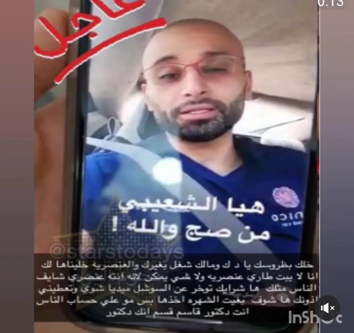وطلبت الشعيبي من الطبيب أن يلتفت إلى عمله، وأكدت أن اتهامه لها بالعنصرية يعكس عنصريته هو.