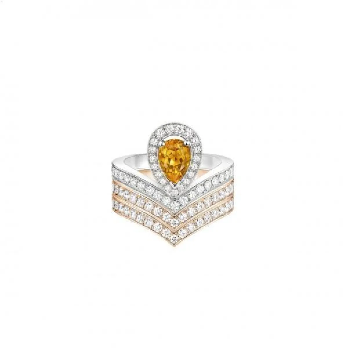 قدمت ماركة دي بيرز De Beers بعض الخواتم بالذهب الأصفر والمرصعة بالألماس الأبيض والأصفر.